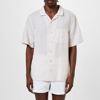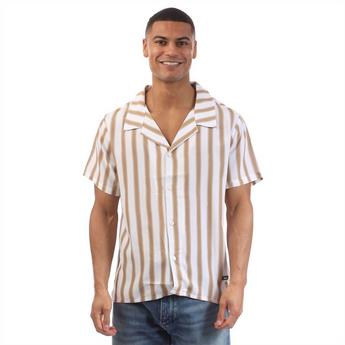 Textured Stripe Revere Collar Short Sleeve Shirt