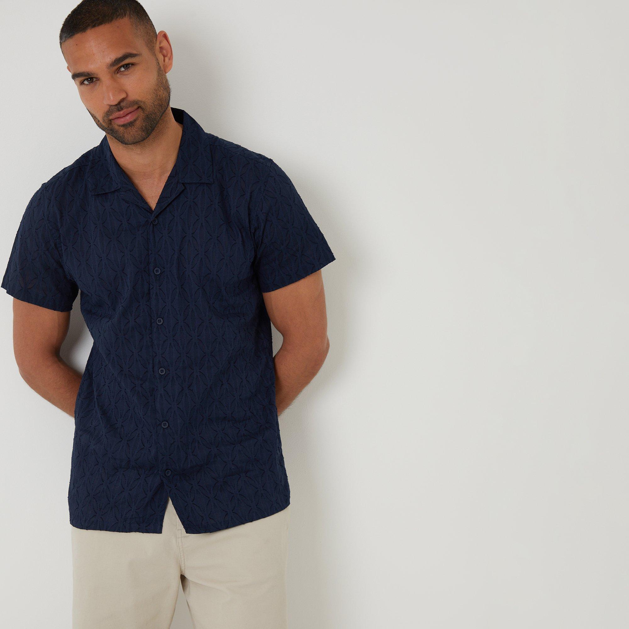 Cotton Pique Revere Collar Short Sleeve Shirt