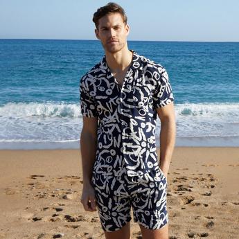 Cotton Pique Revere Collar Short Sleeve Shirt