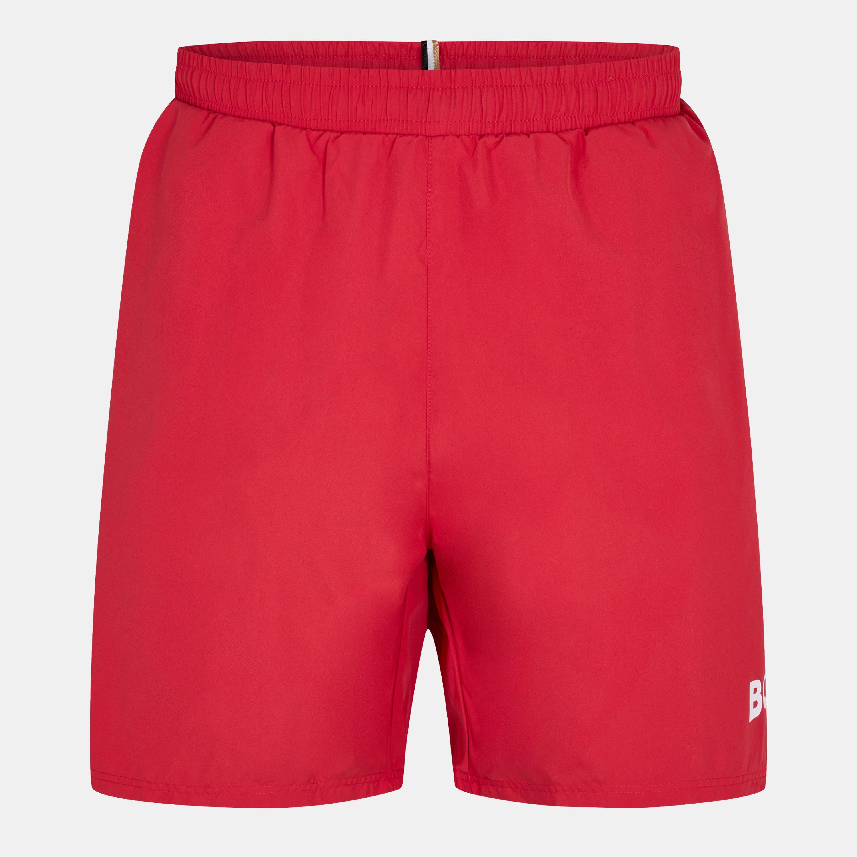 Dive into this season's collection of men's red swim shorts. From bright red to deep burgundy hues, browse a selection of red swim shorts to freshen up your beachwear and poolside attire. You'll find styles with an elasticated waist for a comfortable fit with short and bermuda style swim trunks to choose from. Discover plain and printed designs including logo embossed swim shorts in red hues to add designer appeal. Whether you're jetting off to a sunny destination or making a splash in your local pool, do it in style with our range of men's red swim shorts by brands like Boss, Calvin Klein and Dsquared2