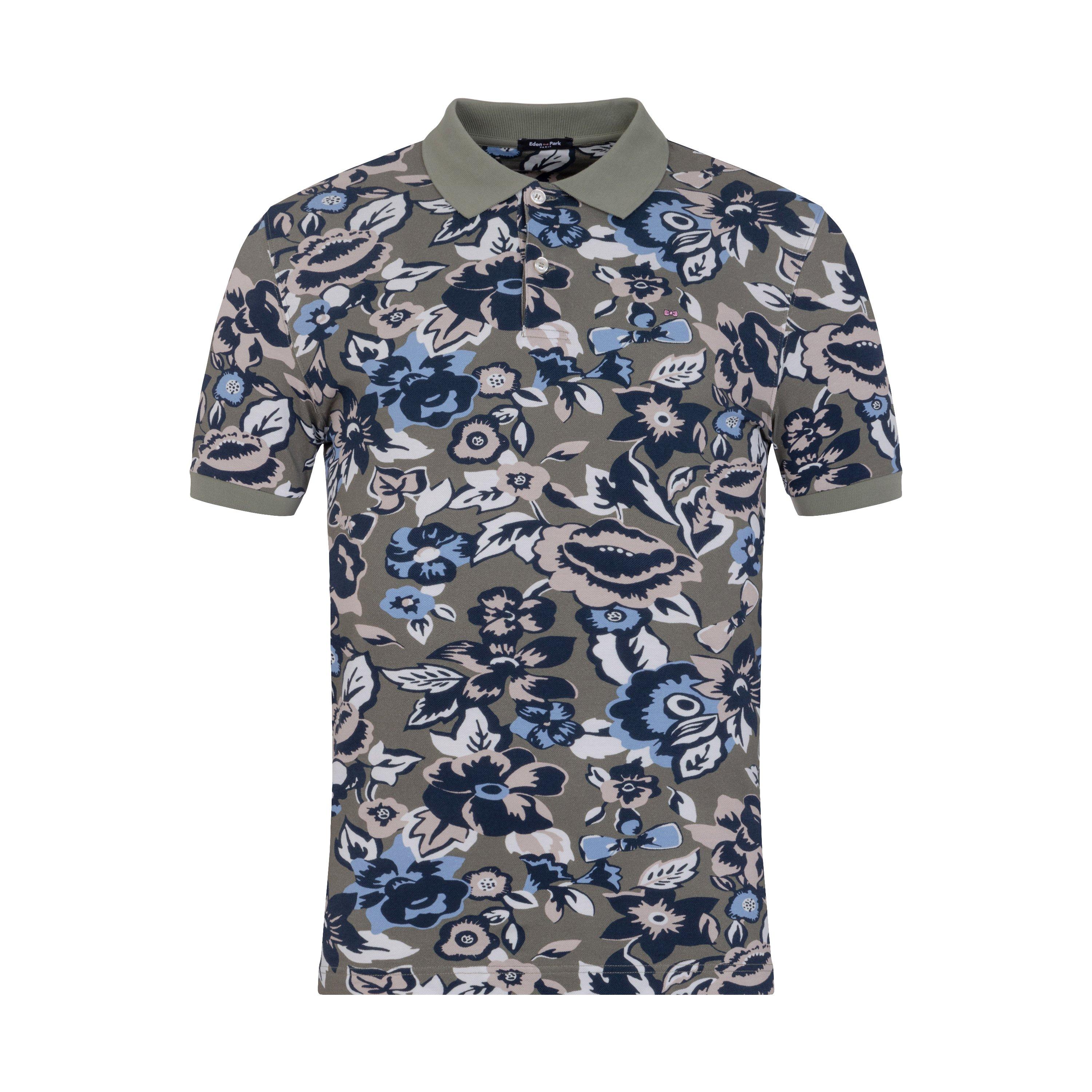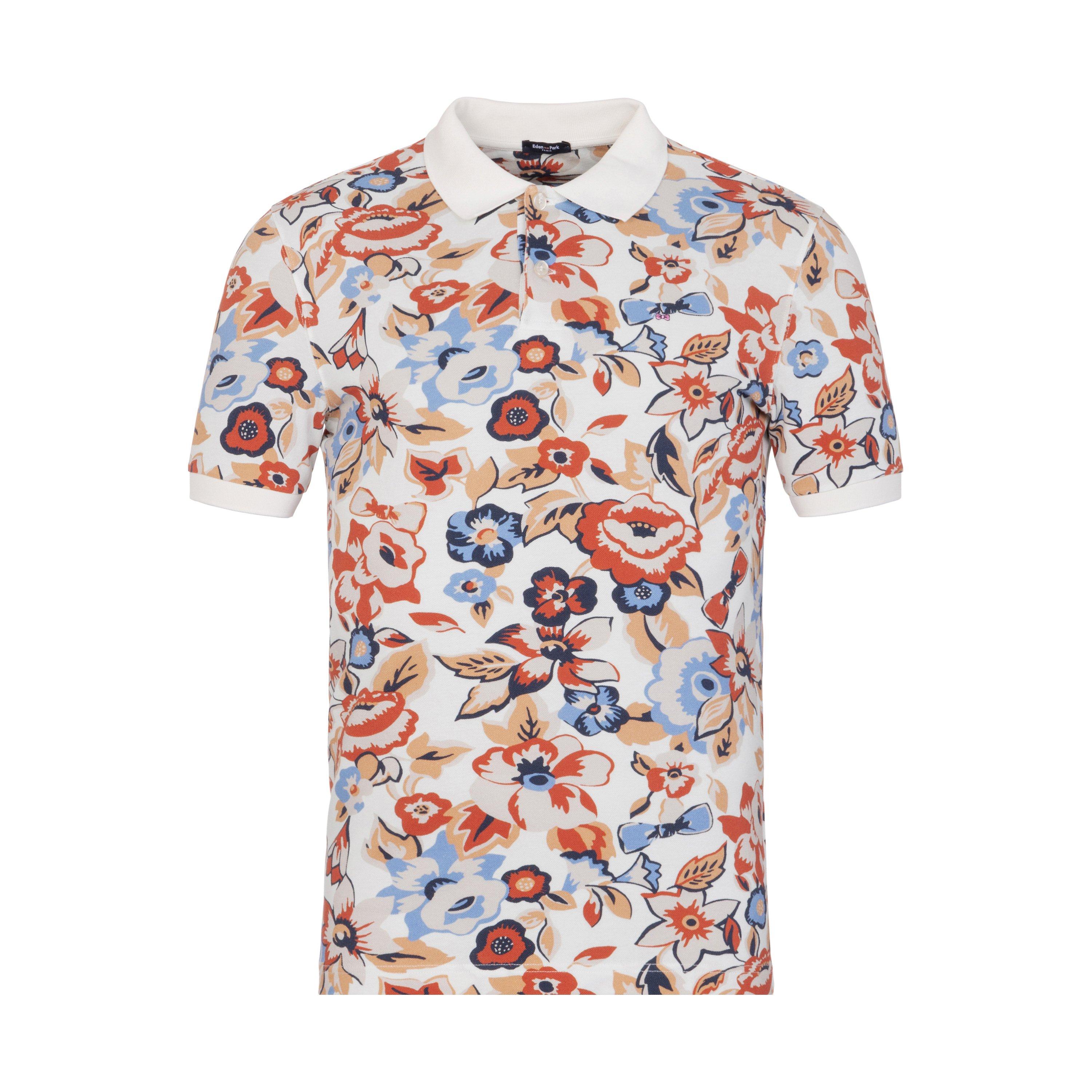 White polo in cotton pique floral print