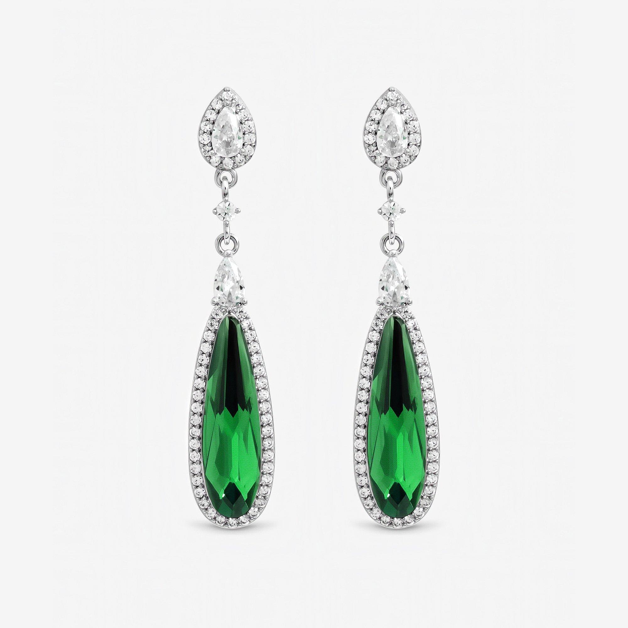 Gold Plated Crystal and Emerald Drop Earrings