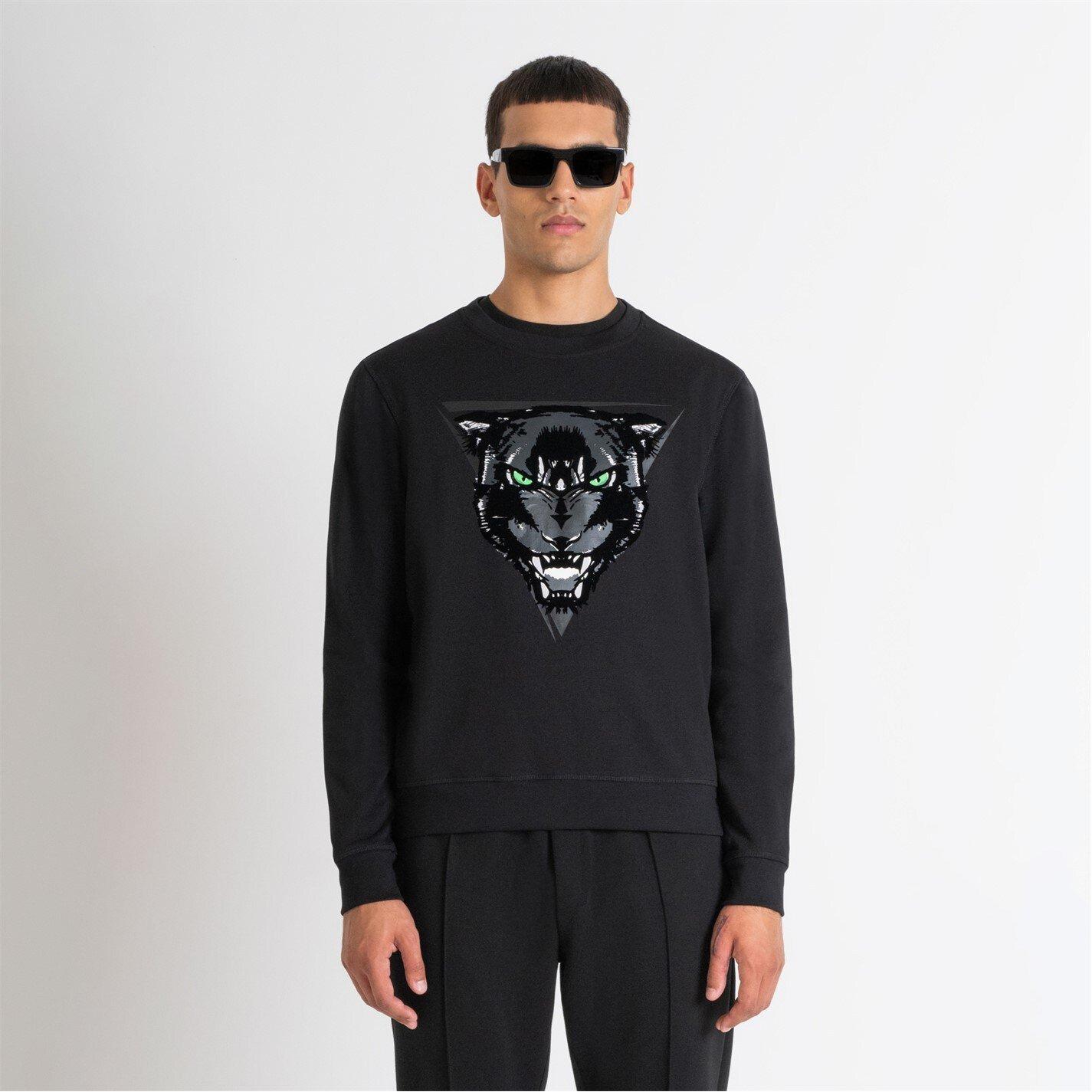 REGULAR FIT SWEATSHIRT IN SUSTAINABLE COTTON BLEND FABRIC WITH PANTHER PRINT