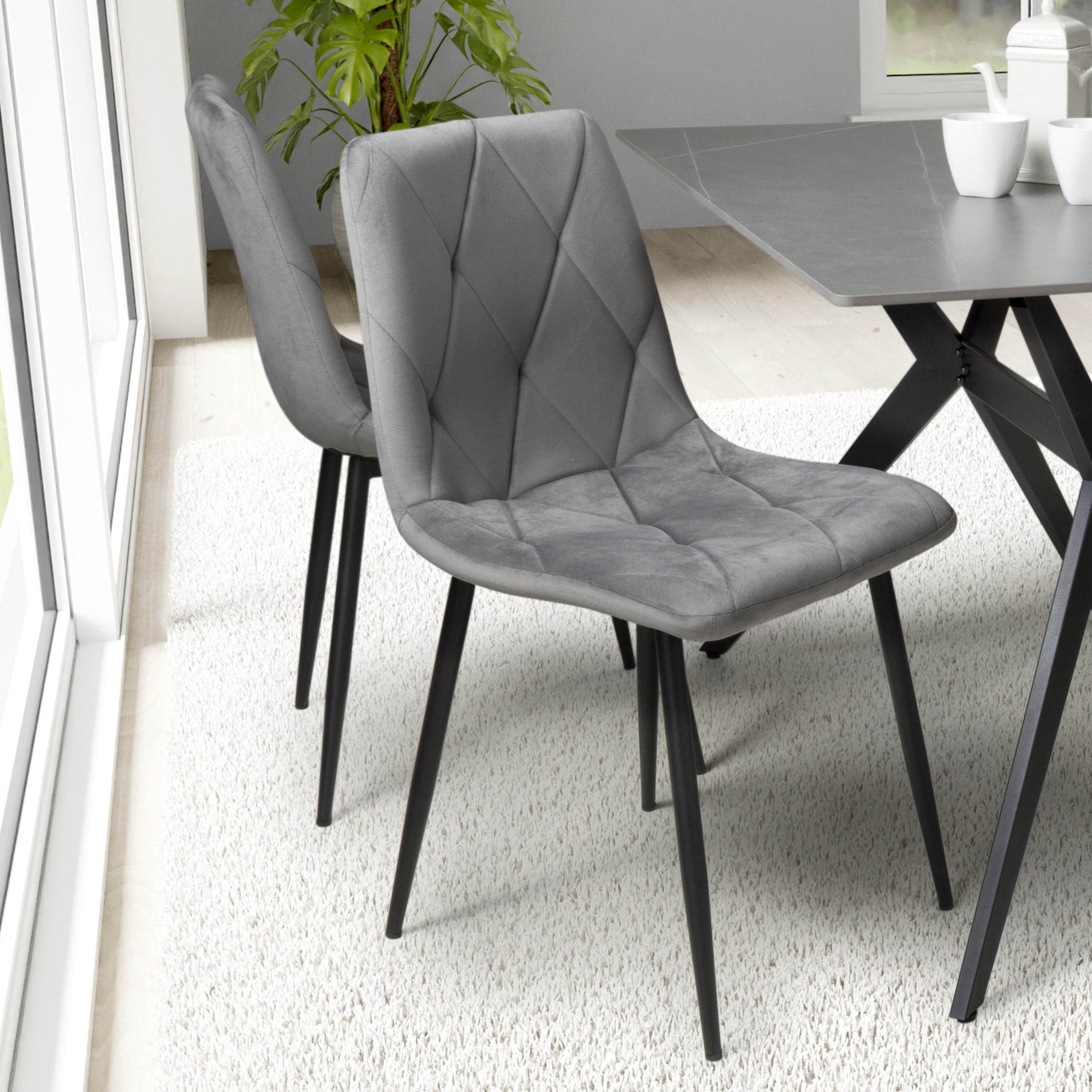 Set of 4 Vernon Brushed Velvet Grey Dining Chair