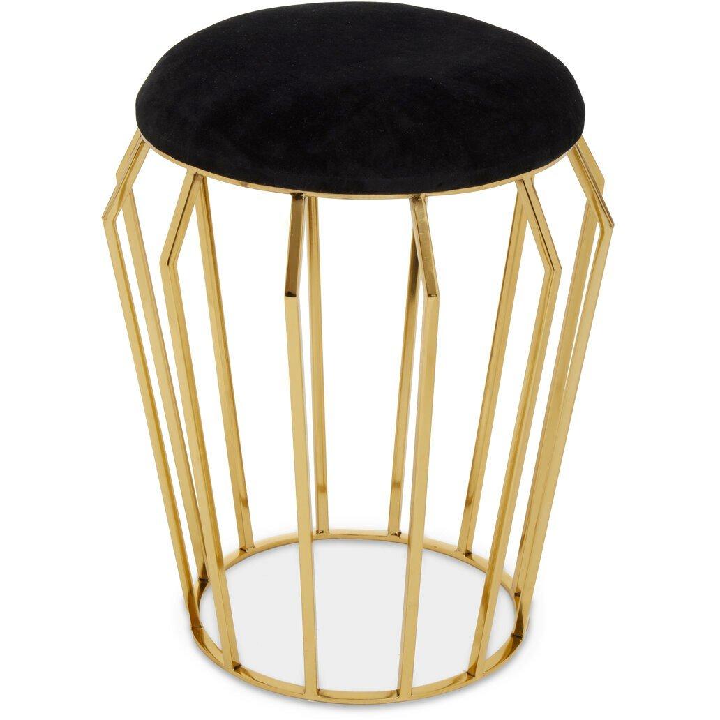 Jaipur Black Velvet And Gold Finish Stool