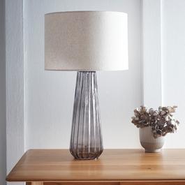 Zoja Satin Gold Table Lamp with Ribbed Glass Shade