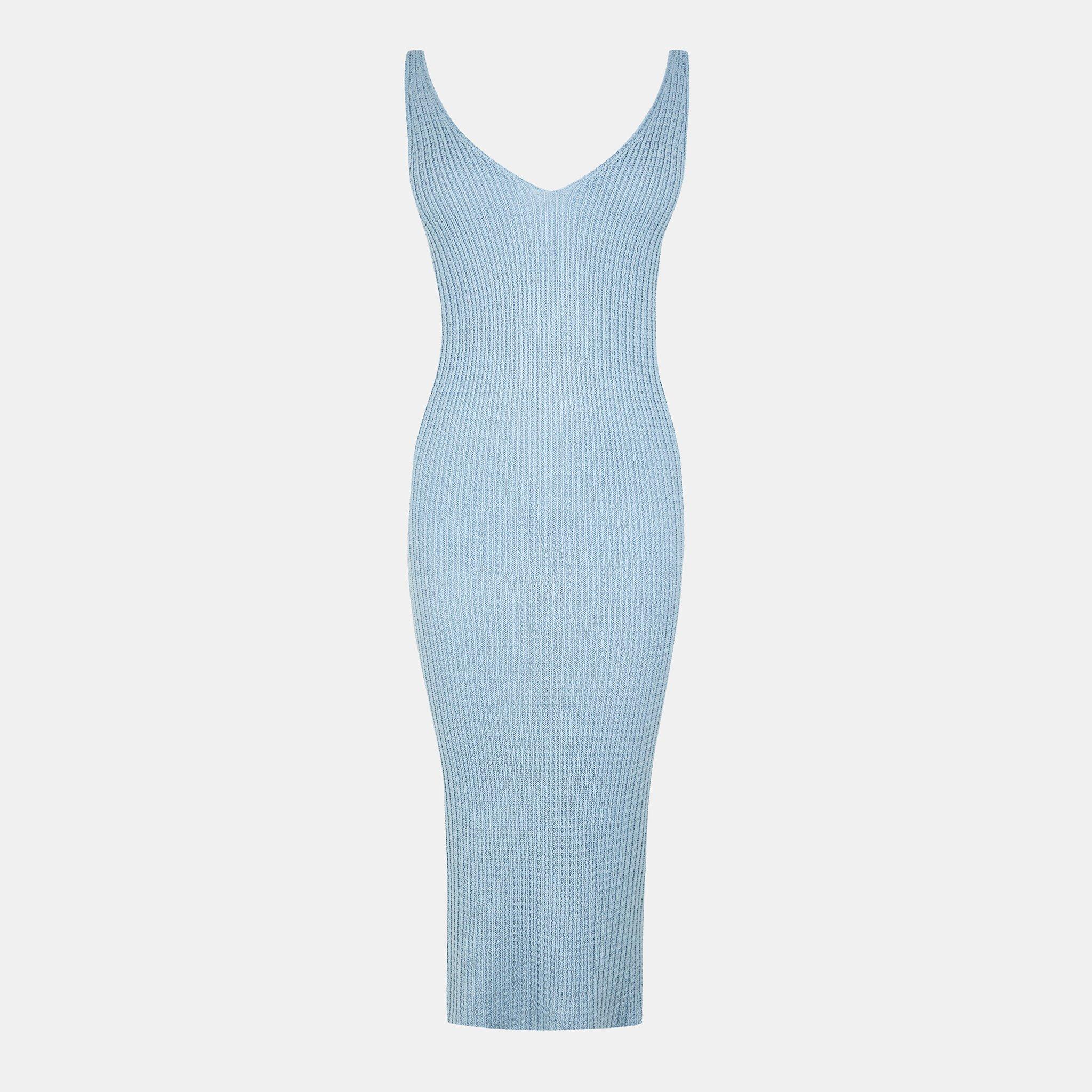 Women's Stitch V-Neck Midi Knitted Jumper Dress