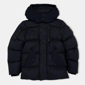 Girls long winter quilted coat fixed hood navy