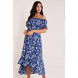 Women's Pink Retro Flower Print Midi Wrap Dress