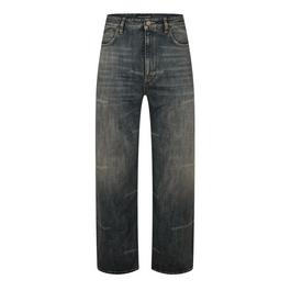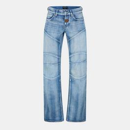 Men's Diag Flare Distressed Patchwork Cotton Bootcut Jeans