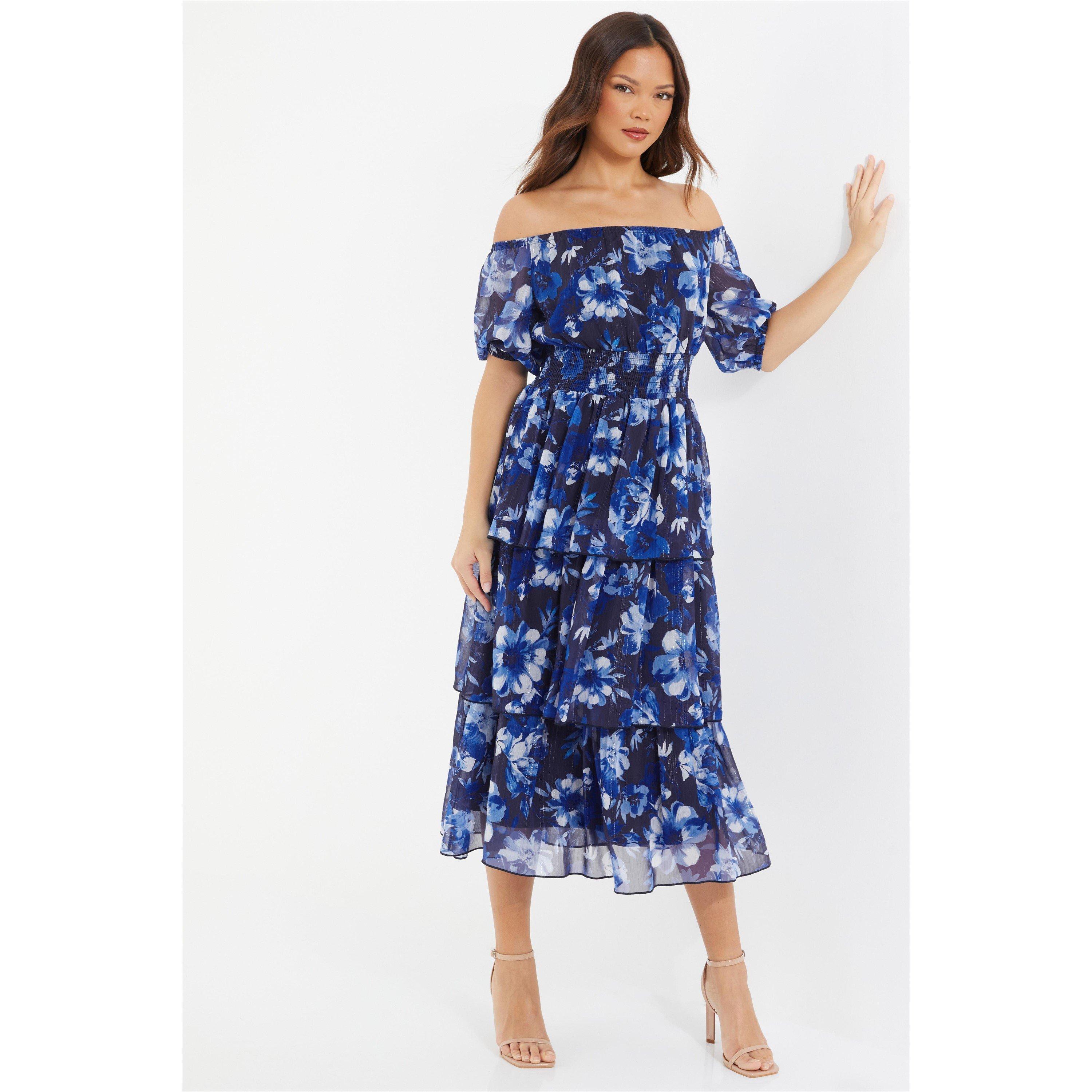 Floral Chiffon Bardot Midi Dress