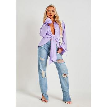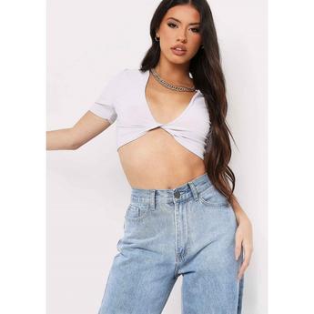 Linen Twist Front Cropped Shirt