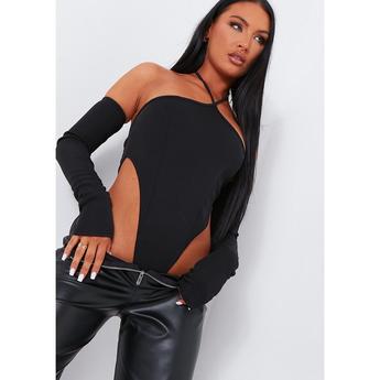 Mesh Contrast Seam Lace Up Long Sleeve Crop Top