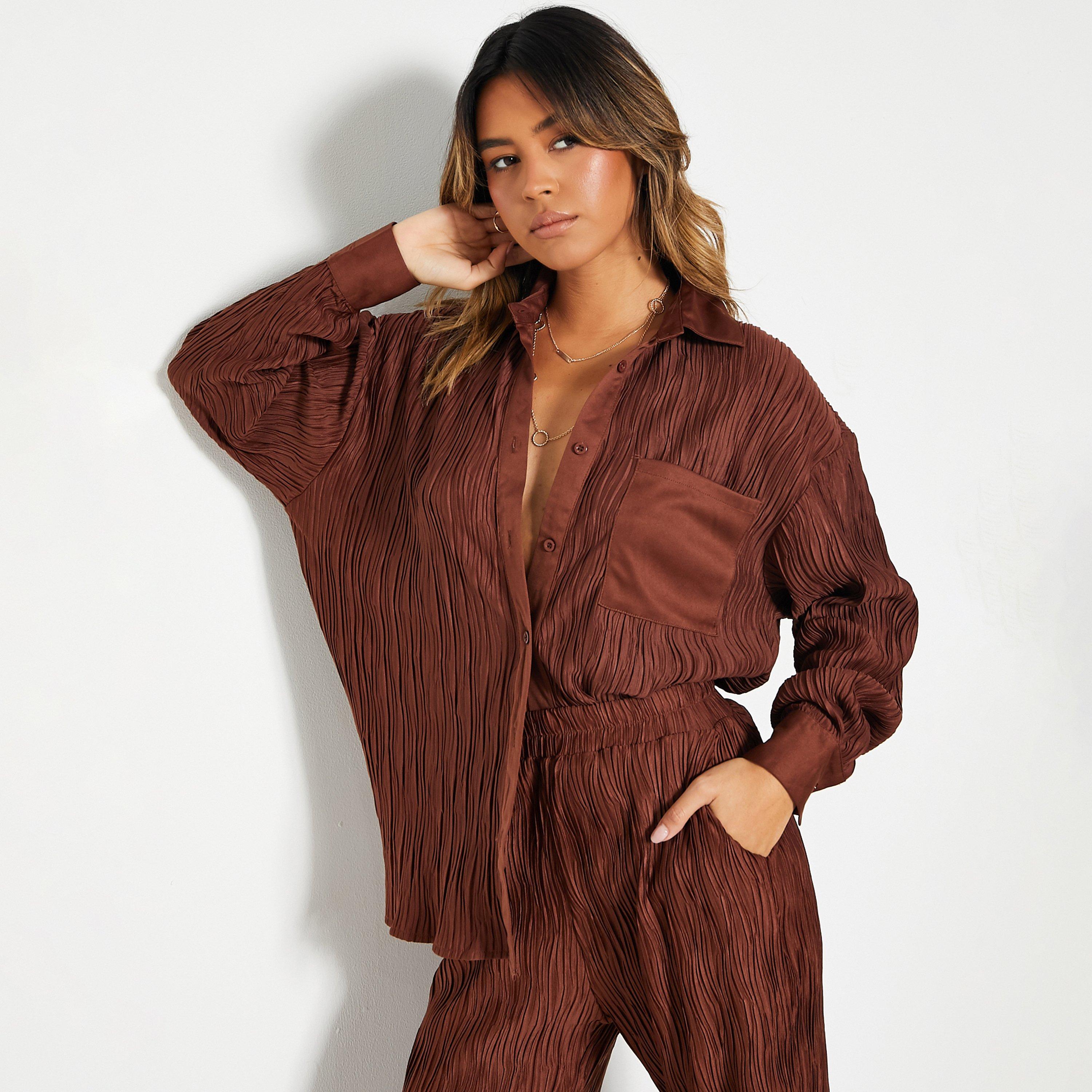 Women's ISIF Oversized Crinkled Long-Sleeve Plain Shirt