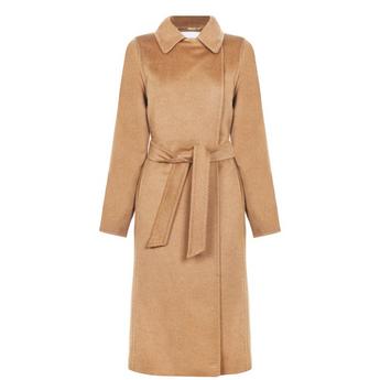 Womens Rose Belted Midi Wool Long Sleeve Coat