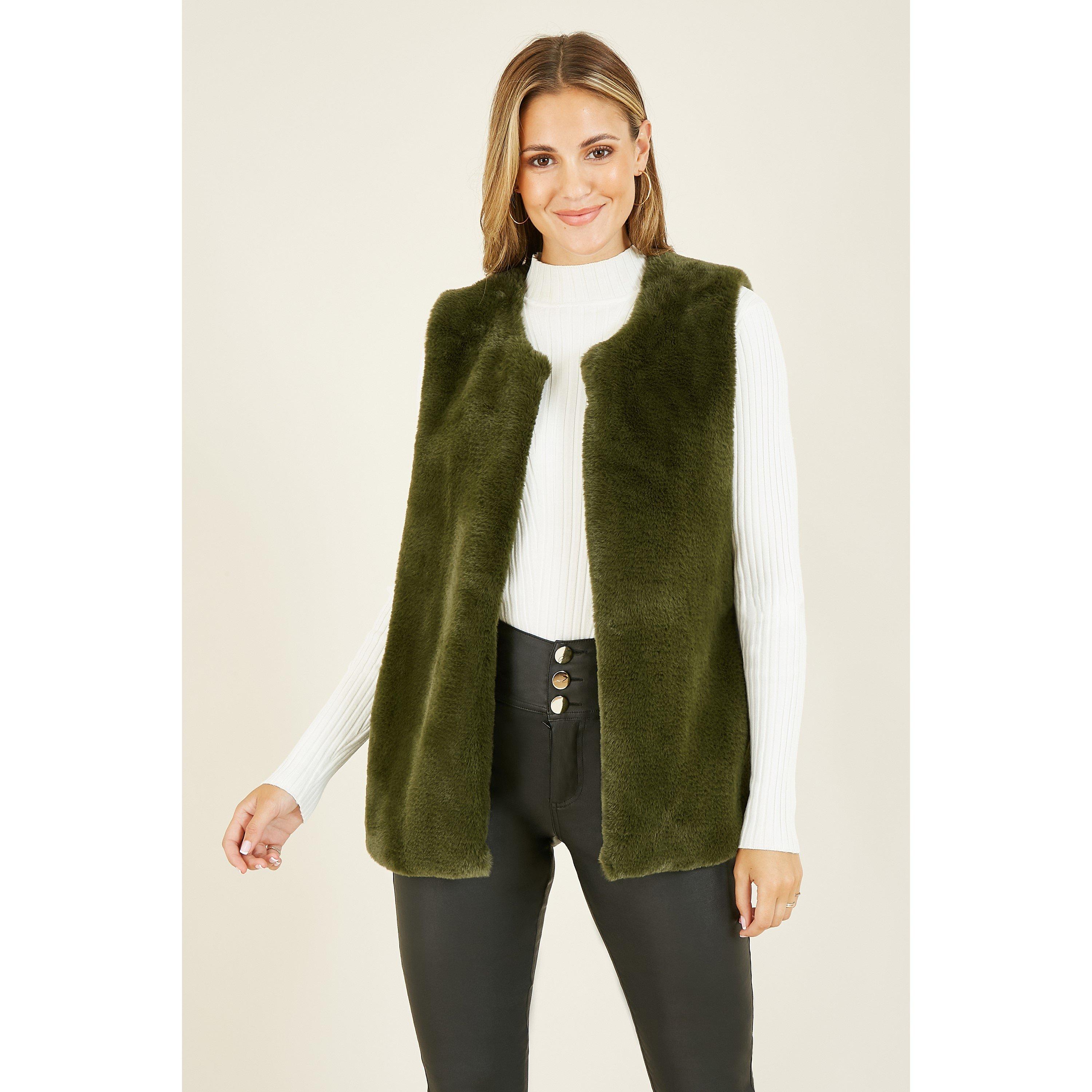 Women's Green Faux Fur Sleeveless Short Puffer Jacket