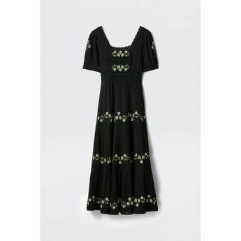 Lovedrobe Black Sparkly Glitter V Neck Midi Dress with Lace Trims