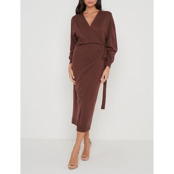 Multi Print High Neck Long Puff Sleeve Midi Dress