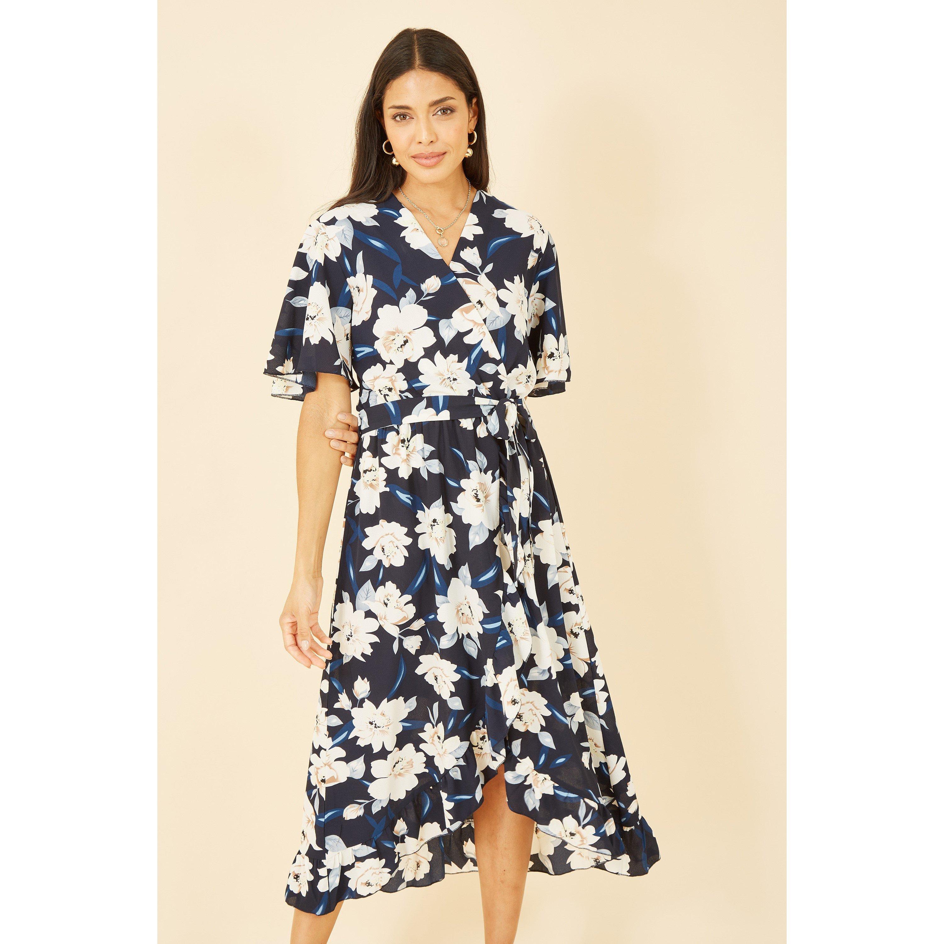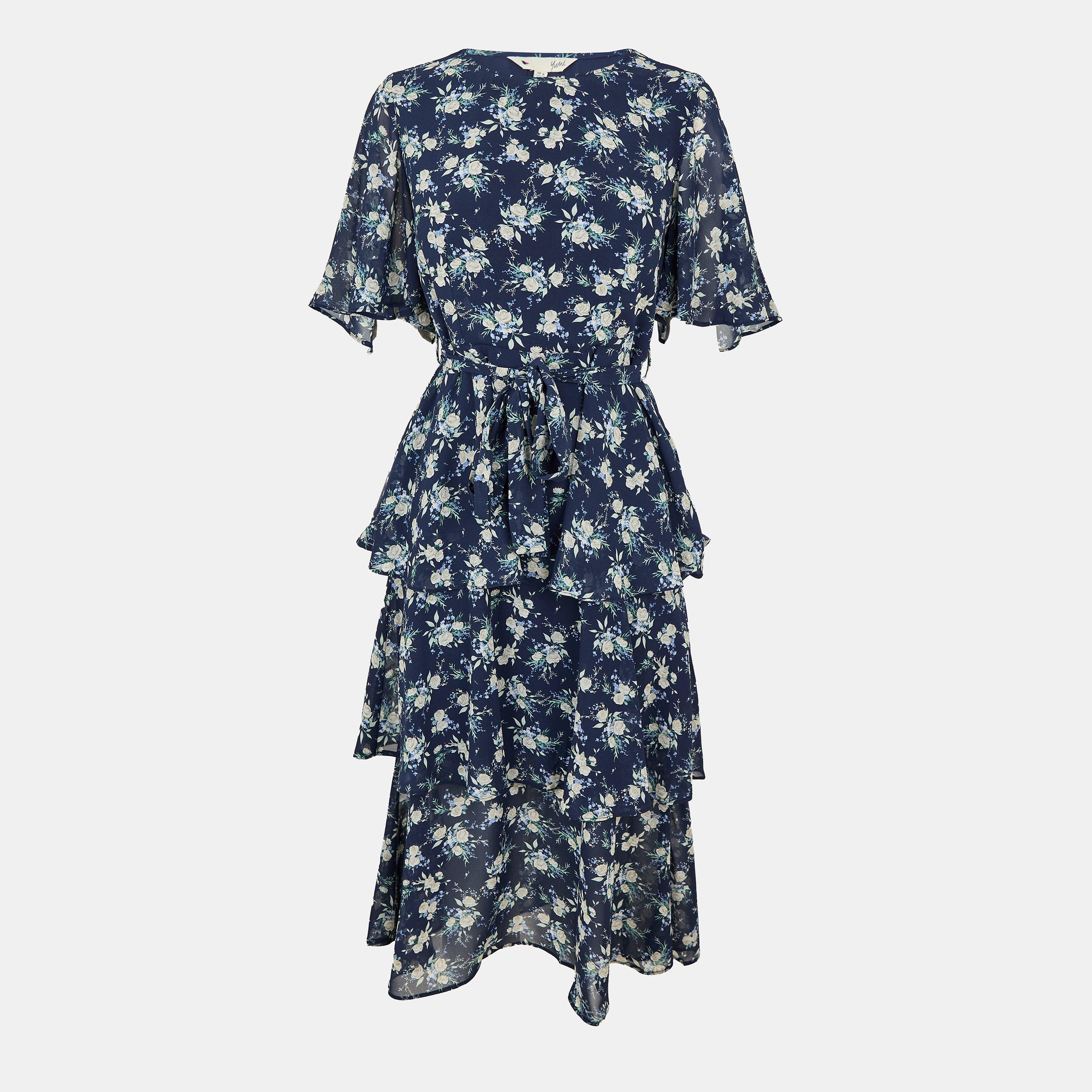 Navy Floral Frill Layer Midi Dress