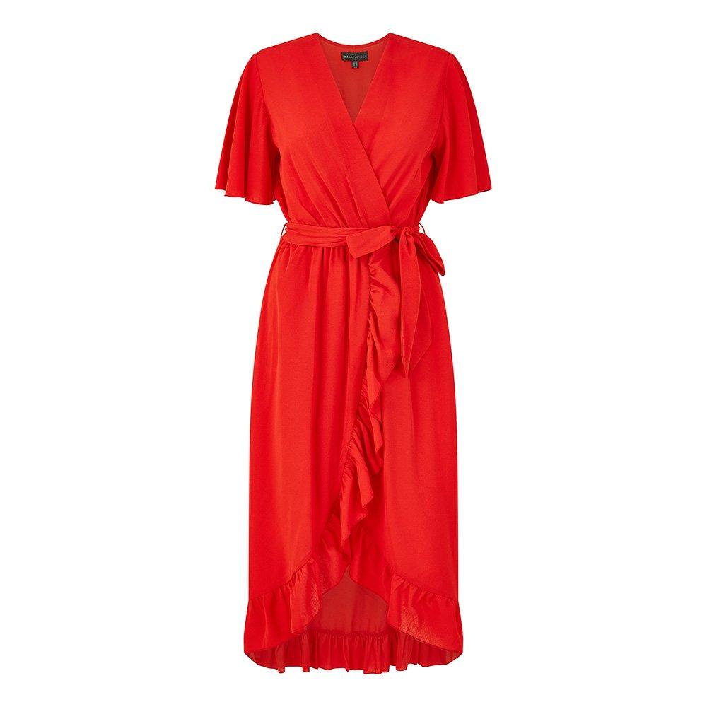 Women's Green Satin Dipped Hem Midi Wrap Dress