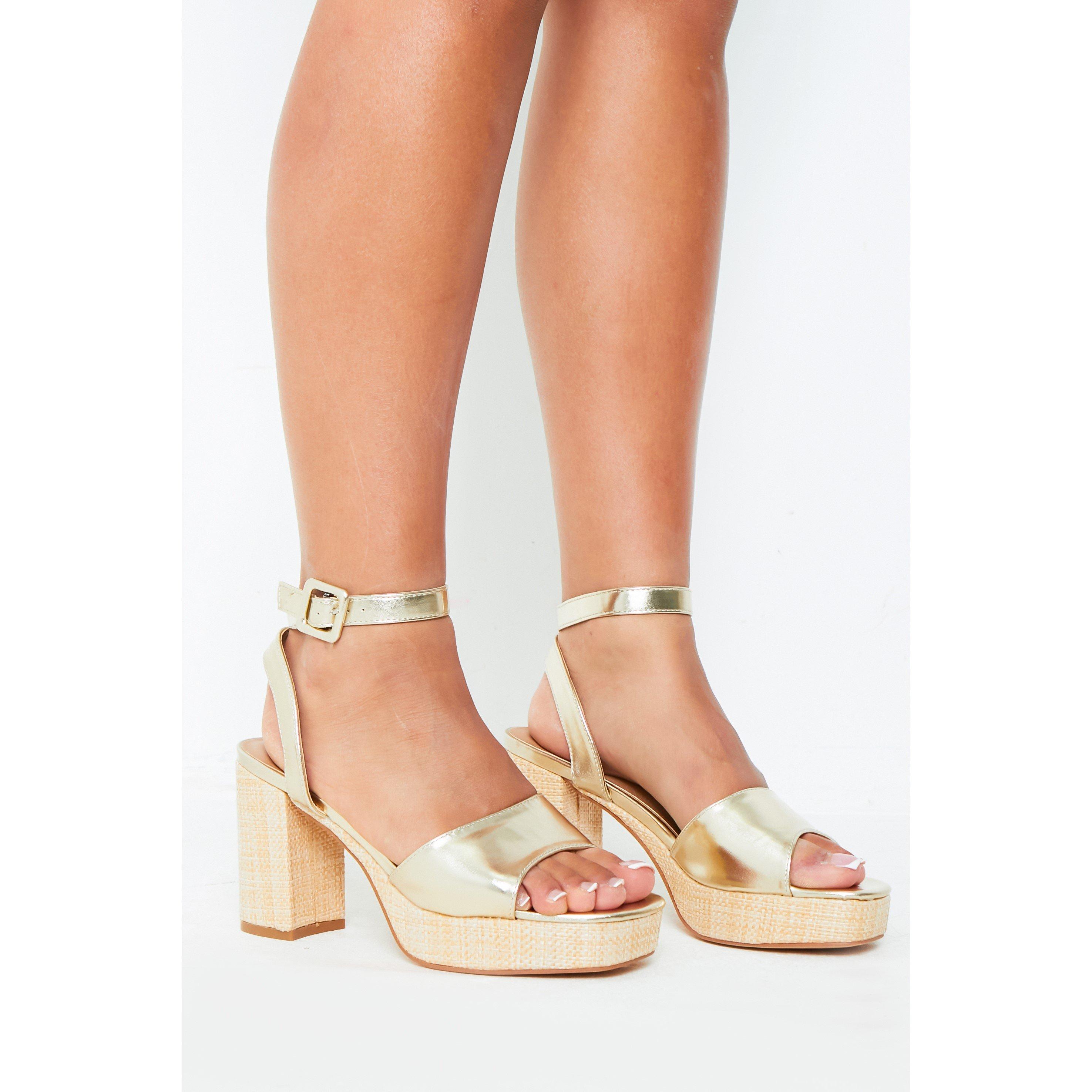Women's Gold Strap Block Platform Heeled Sandals