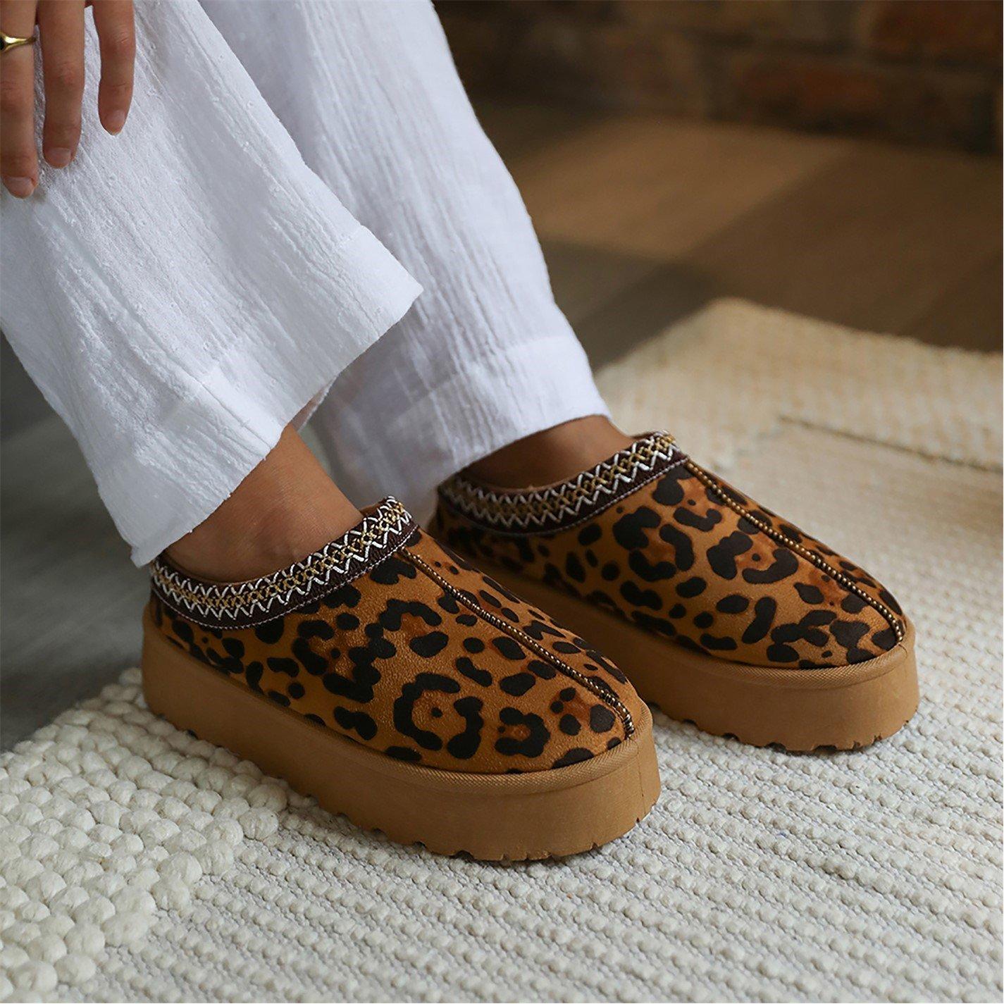 Pine Leopard Faux-Suede Fur Lining Slipper Boots