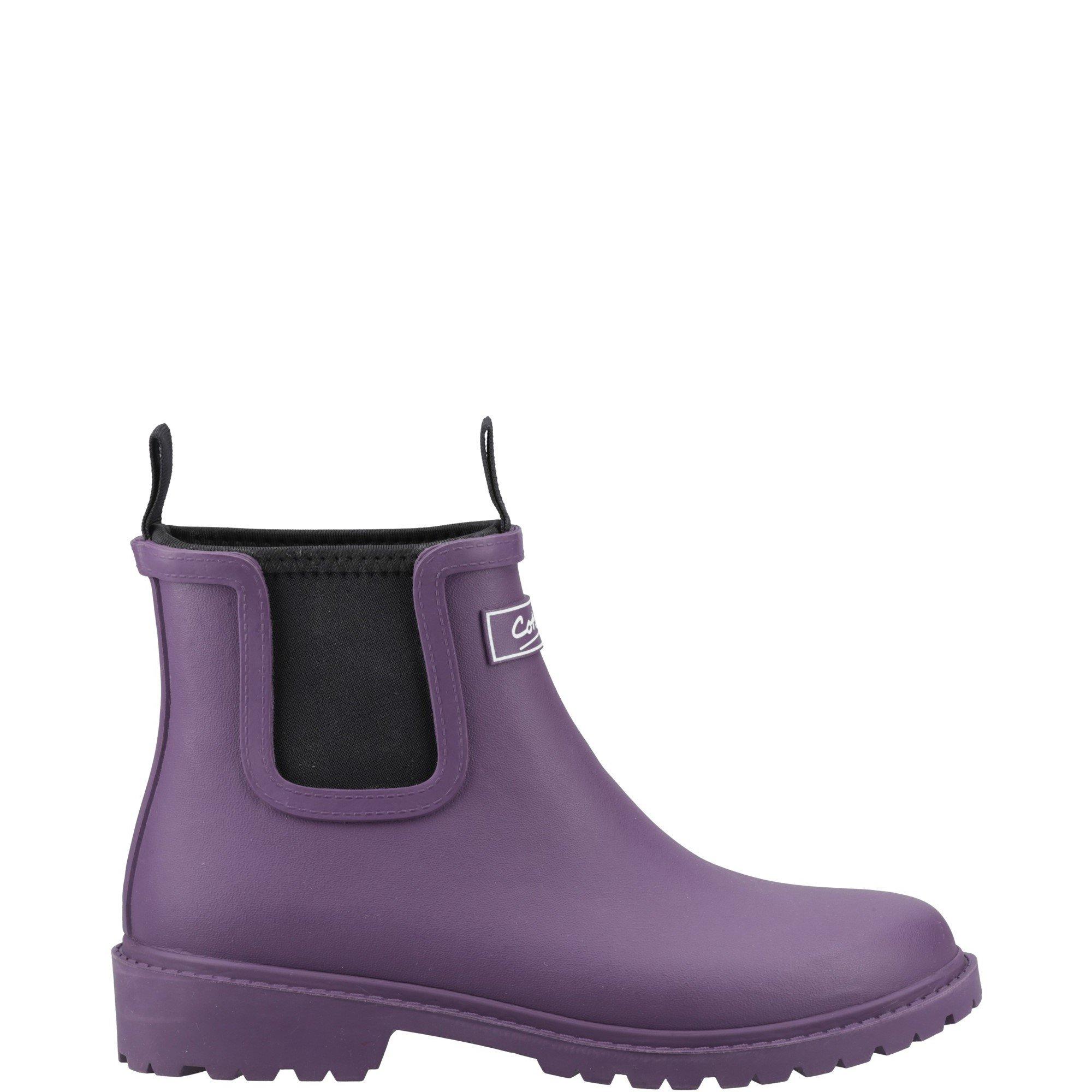 Step into style and comfort with our vibrant collection of women's purple wellies. Available in a range of shades from deep plum to soft lilac, these purple wellington boots bring a bold statement to any rainy day. Choose from classic knee-high for a timeless look or opt for ankle-height styles for an easy, versatile option. Whether you're navigating the city streets or heading to an outdoor festival, these wellies offer the perfect balance of practicality and style. Pair your purple wellington boots with a cozy knit sweater and a plaid scarf for a chic, cozy vibe on cooler days. Embrace the maximalist fashion trend by teaming them with a printed oversized coat and chunky accessories for an eye-catching look. Shop our collection of women's purple wellies today and make a statement with every step you take.