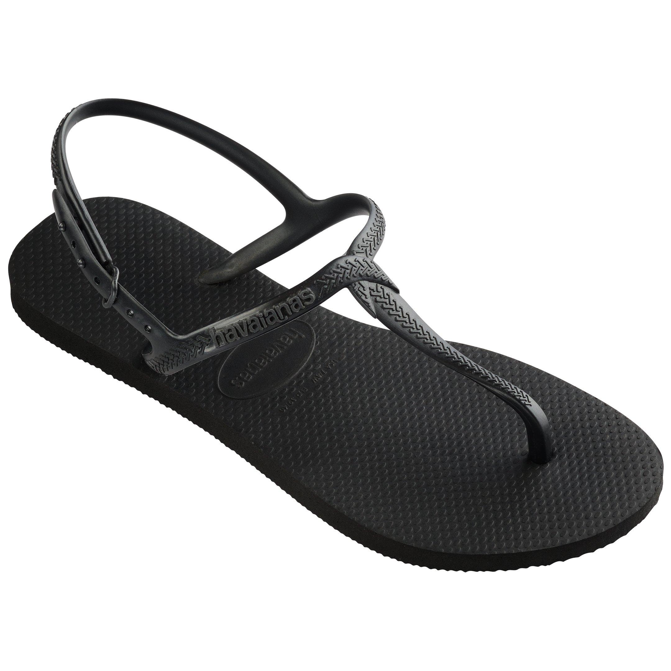 A holiday staple and an essential for the warmer months, shop this season's collection of black flip flops for men and women. From flat to heeled flip flops, discover an array of styles for all occasions including classic rubber styles, jelly flip flops and sleek leather flip flops. Add designer appeal with logo embossed styles, choose flip-flops with chunkier soles providing extra comfort or opt for a trusty pair of black Havaianas. Shop the edit of black flip flops by brands Emporio Armani, Ted Baker, Skechers, The North Face and more.