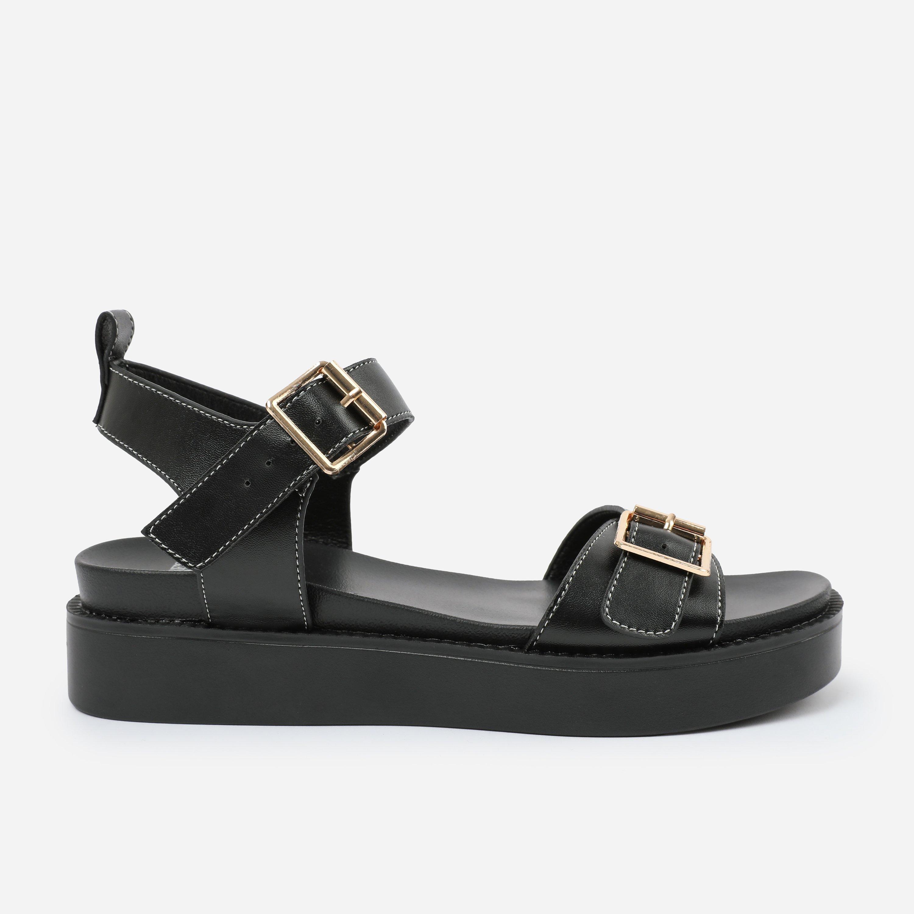 BlackPU Isabel Double-Buckle-Strap Platform Sandal