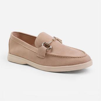 Beige Suede Pegasus Wide-Fit Slip On Loafers