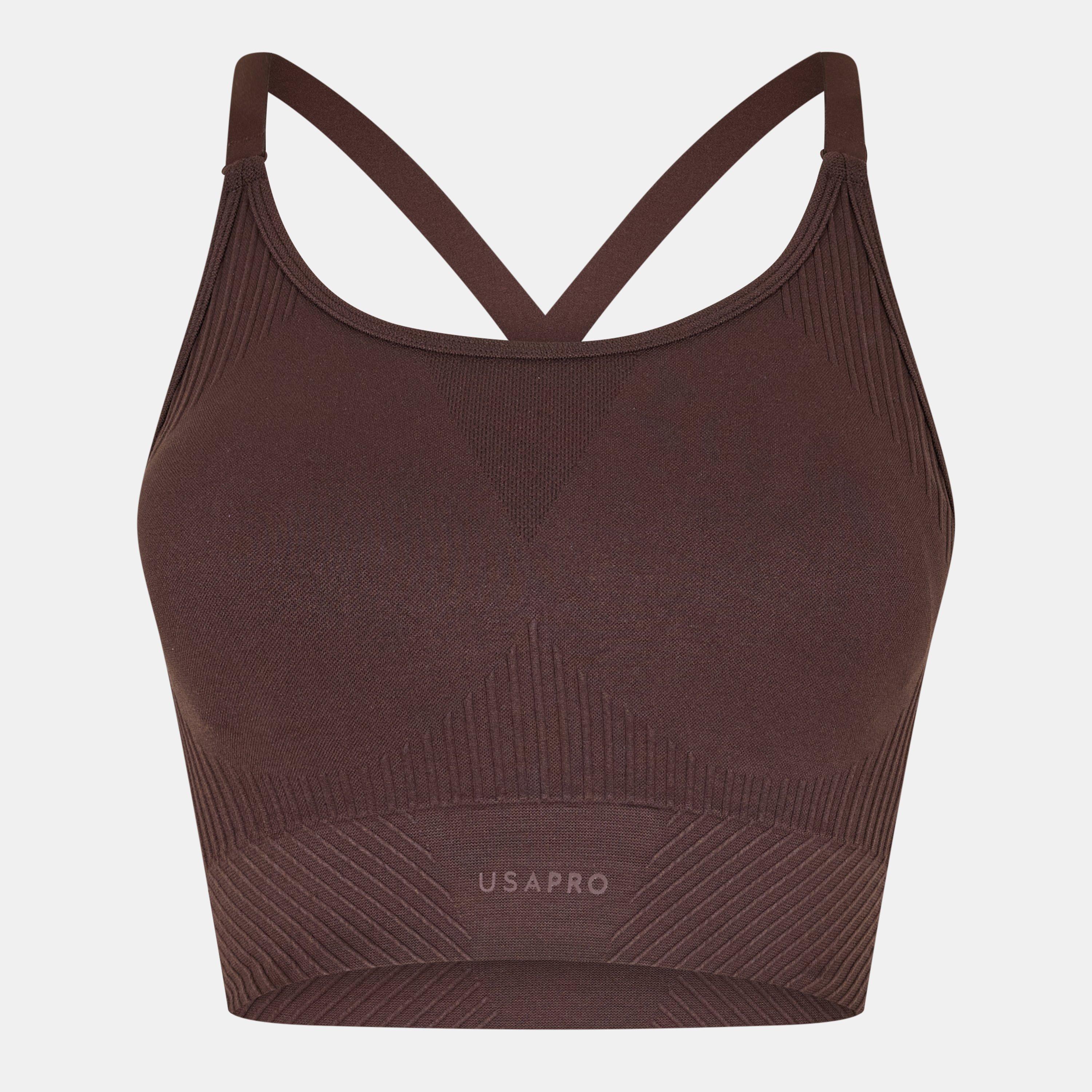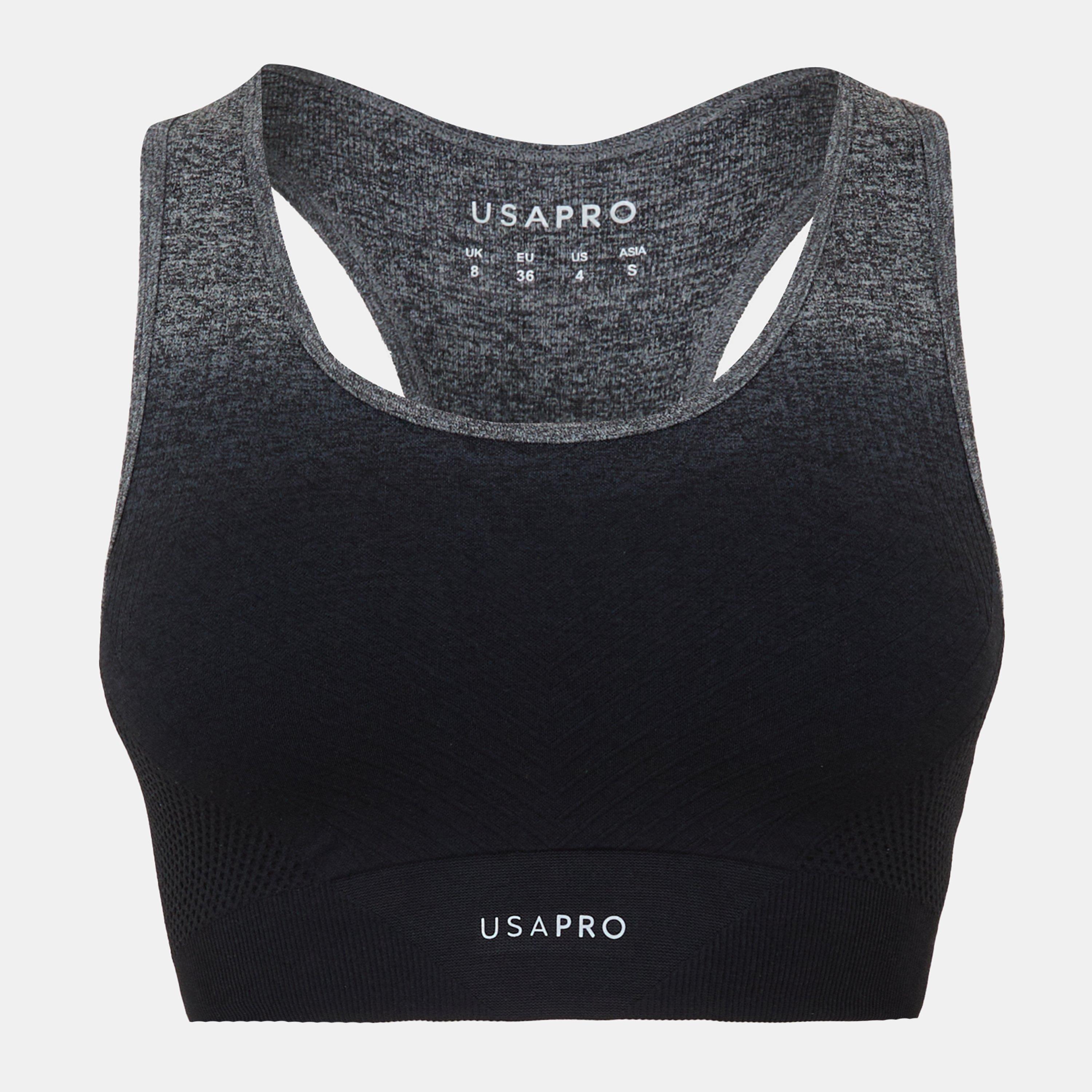 Get the best support during your next workout with our collection of women's USA Pro sports bras. Discover various colour options with the signature logo, featuring black, blue, grey and green colours that you can pair with your workout leggings or shorts. Whether you're after a scoop back, cross-back, padded or unlined sports bra, there's something for every body type to get you through your next gym session or outdoor training. From seamless sports bras to wide strap styles, find the best training gear today.