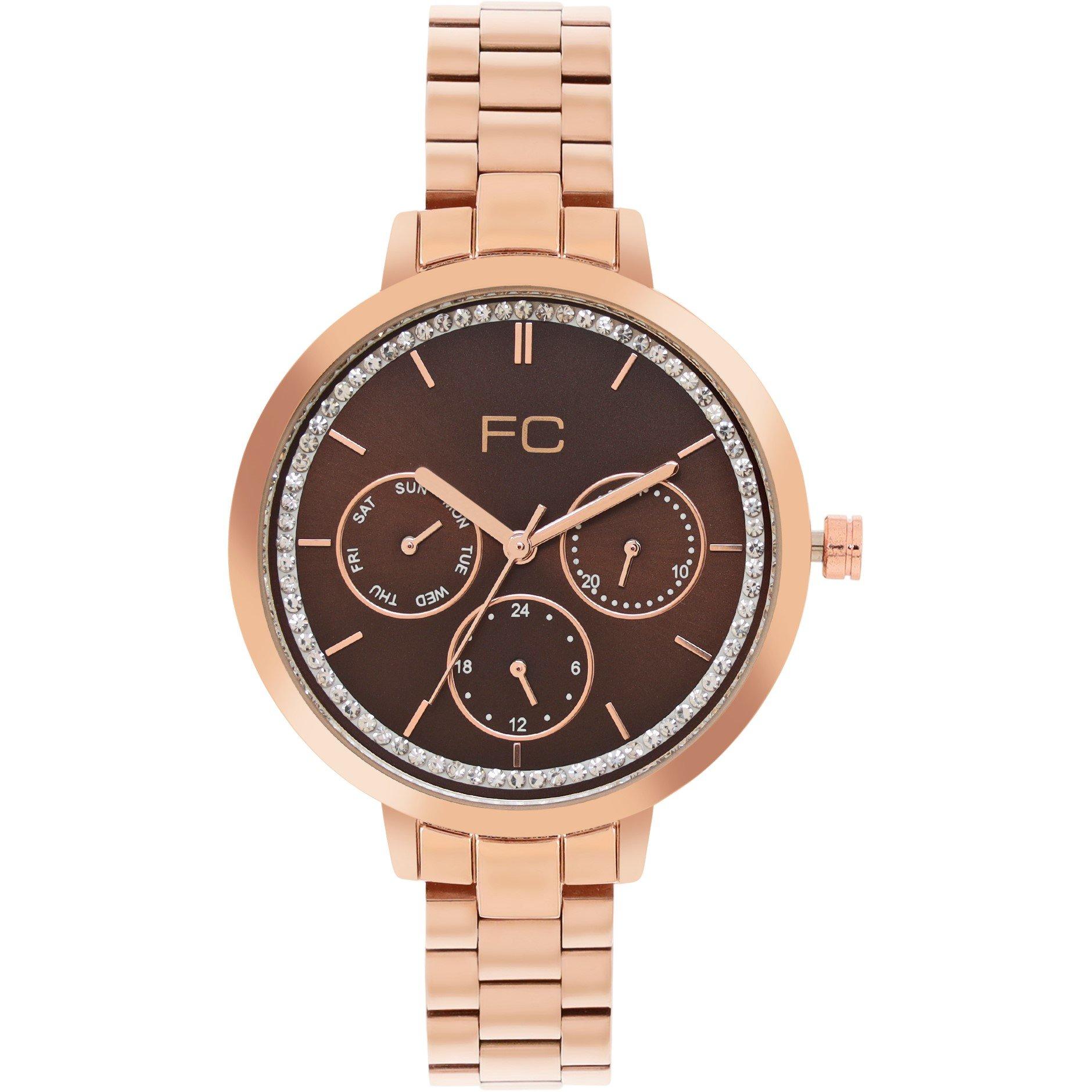 Connection Cornelia BROWN Round Analog Watch With Rose Metal Strap for Women