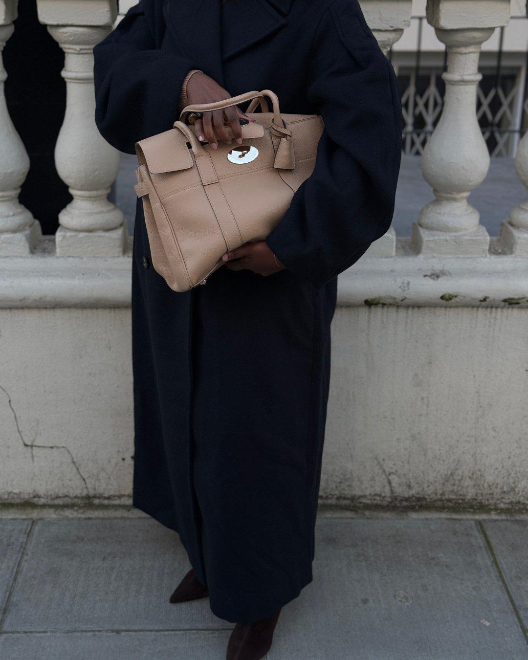 Styling an oversized cocoon coat with the classic Mulberry Bayswater felt like the perfect pairing. That beautifully structured shape in a soft peachy chalk against navy? Exactly the kind of subtle bit of friction that in my humble opinion makes any outfit feel a little more intentional but also look effortlessly chic? Which sounds like a contradiction but makes sense , right?