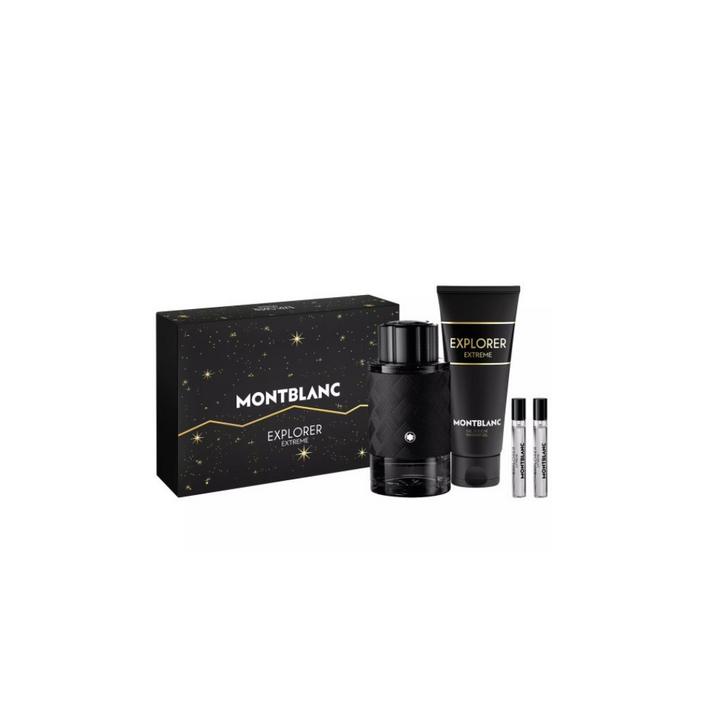 For the man with a signature scent. Enter Montblanc’s Explorer Extreme Gift Set. A 4-piece collection featuring the bold parfum, a refreshing shower gel and two travel-size parfum sprays. With a fresh citrus opening, a warm woody heart and a strong leathery base, it captures the essence of masculinity. Made for the modern adventurer, it’s a gift that leaves a lasting impression.