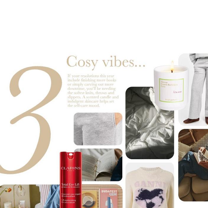 And when it comes to setting the scene, it’s all about the little things: fluffy knits, scented candles and indulgent skincare from brands like Ganni, Clarins and Jo Malone London, all helping to turn downtime into something you look forward to.
