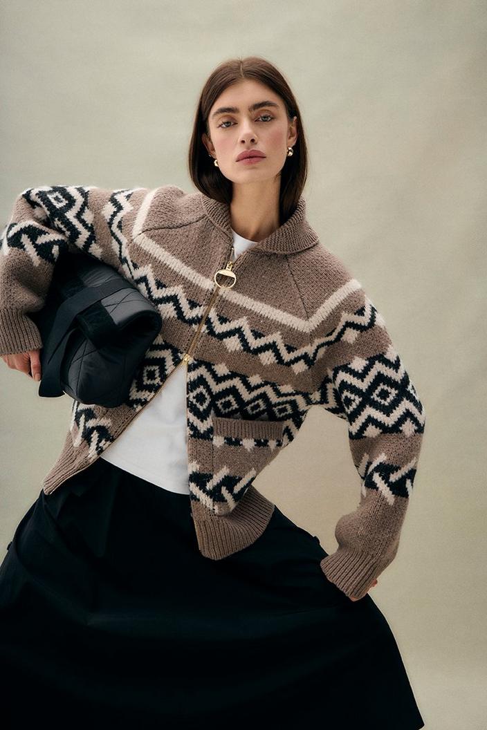 The key to looking stylish in a cardigan is all about proportion and texture. Try pairing a fitted or cropped style with high-waisted jeans or a midi skirt to define your shape, or offset a chunky knit with something sleek underneath like a satin slip or tailored trousers. Keep the rest of your look simple and deliberate: rolled sleeves, layered jewellery, and clean lines make the cardigan feel intentional, not just practical.