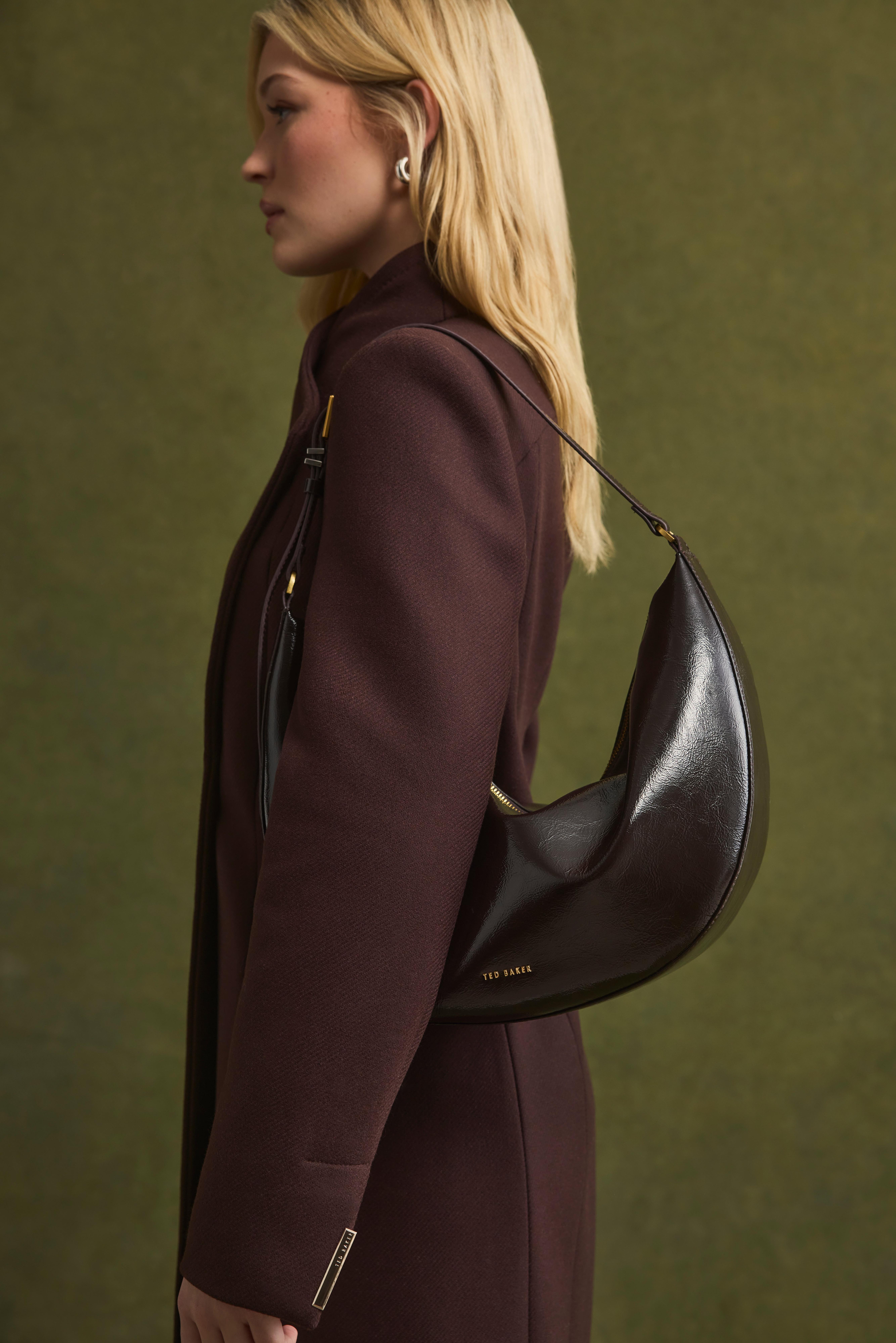 The structured coat holds everything together. A tailored wool piece creates clean lines that frame the maxi dress without overwhelming it. It’s a refined pairing that works for workdays, evenings and winter events alike, especially in jewel tones or winter florals.