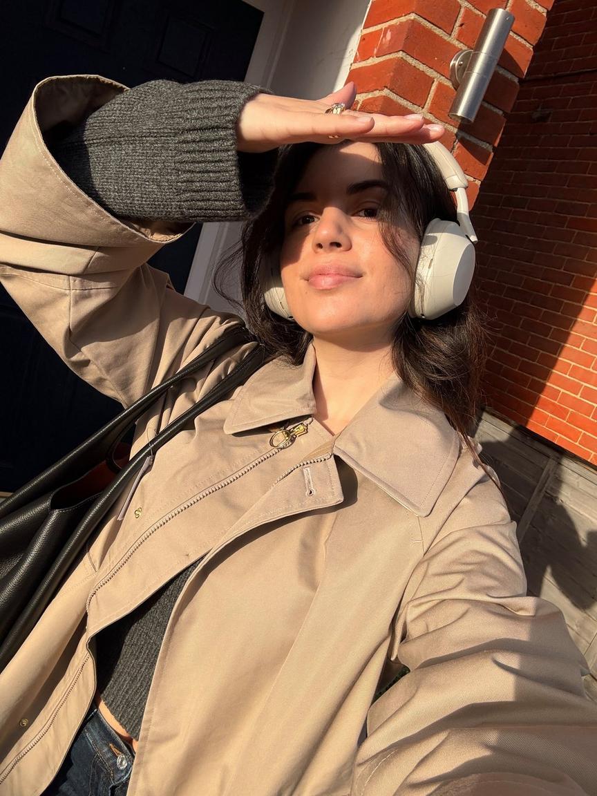 Outerwear matters at this time of year, as it’s the thing you wear the most often. The Kennedy Showerproof Jacket from Barbour is a staple. It’s practical enough for sudden drizzle, but chic enough to wear with trainers (New Balance, always) or loafers while running errands. I’m equally devoted to the Coach Lana bag all year round, it’s roomy enough for my Kindle, notebook and headphones, and versatile enough to carry me through any day, any season.