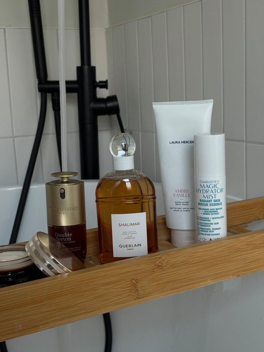 As someone whose energy is really determined by the weather outside, for me, the first hour or so of my day really sets the tone for having more control over how I feel during the colder, darker months, and I try to prioritise my morning routine to set me up for the best day possible. I always do my skincare in the morning, and love products that work to revitalise tired skin, like the Charlotte Tilbury magic Hydrator Mist which is great all year round. For winter, I gravitate towards products that keep my skin - which is prone to dullness and dryness - feeling moisturised. I love the Clarins Double Serum to boost and brighten, followed by the Estee Lauder Advanced Night Repair Cream which I leave on overnight.