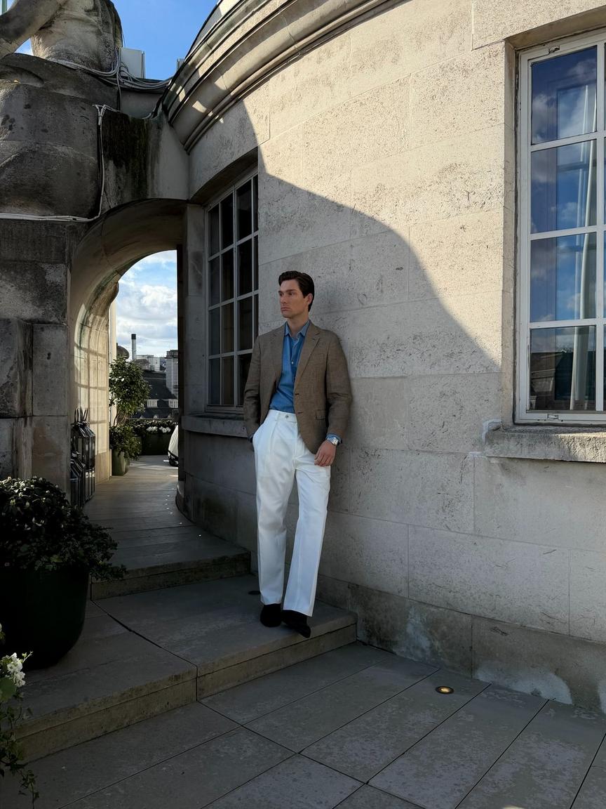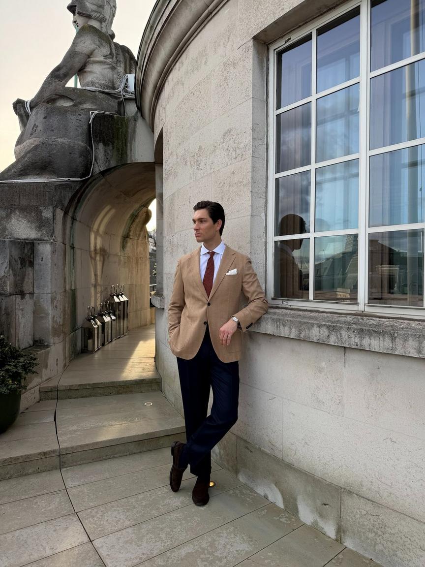 Race day comes with a certain expectation. It’s one of the few occasions where leaning into tradition actually works in your favour, and a tan blazer with navy trousers delivers exactly the right level of polish.