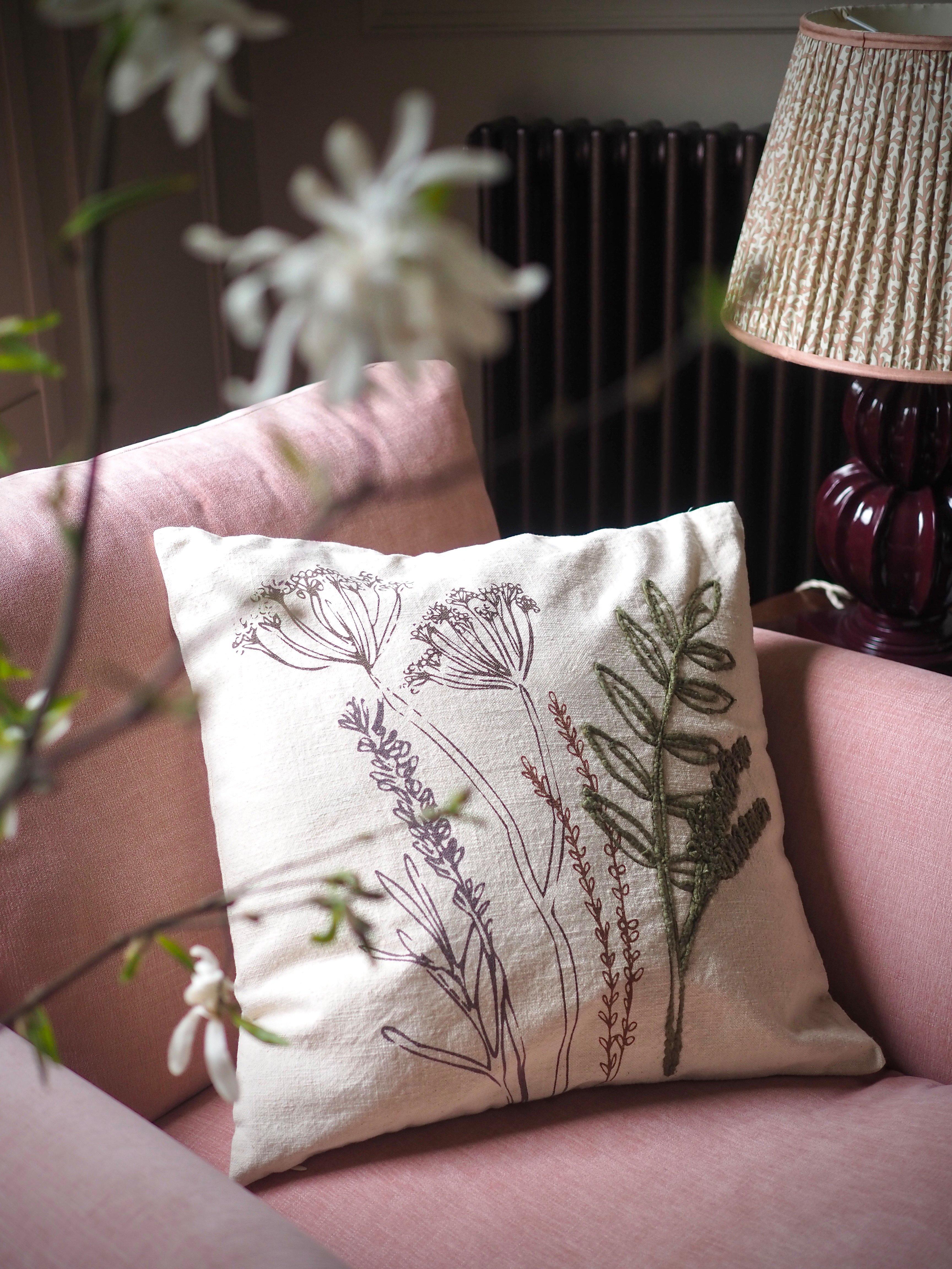 Embroidery! Embroidery is huge for 2026 and texture always adds depth to a room and gives it more interest. Embroidered floral cushions are a favourite for me right now.
