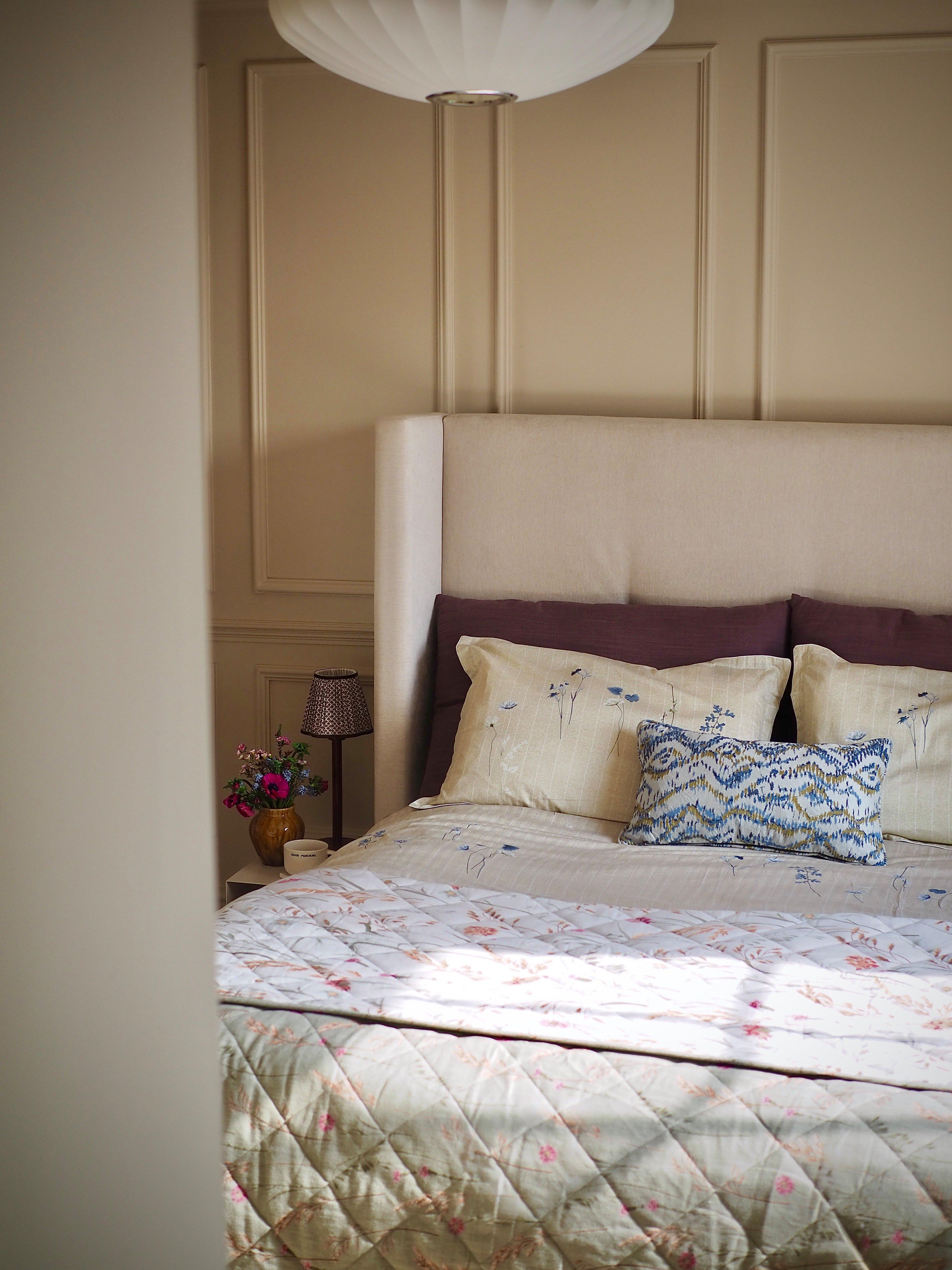 A new bed cushion always works well! It’s a simple update that will give your whole bed a new look. Also try mixing up your bedside tables or dressing table: a new vase can make all the difference!
