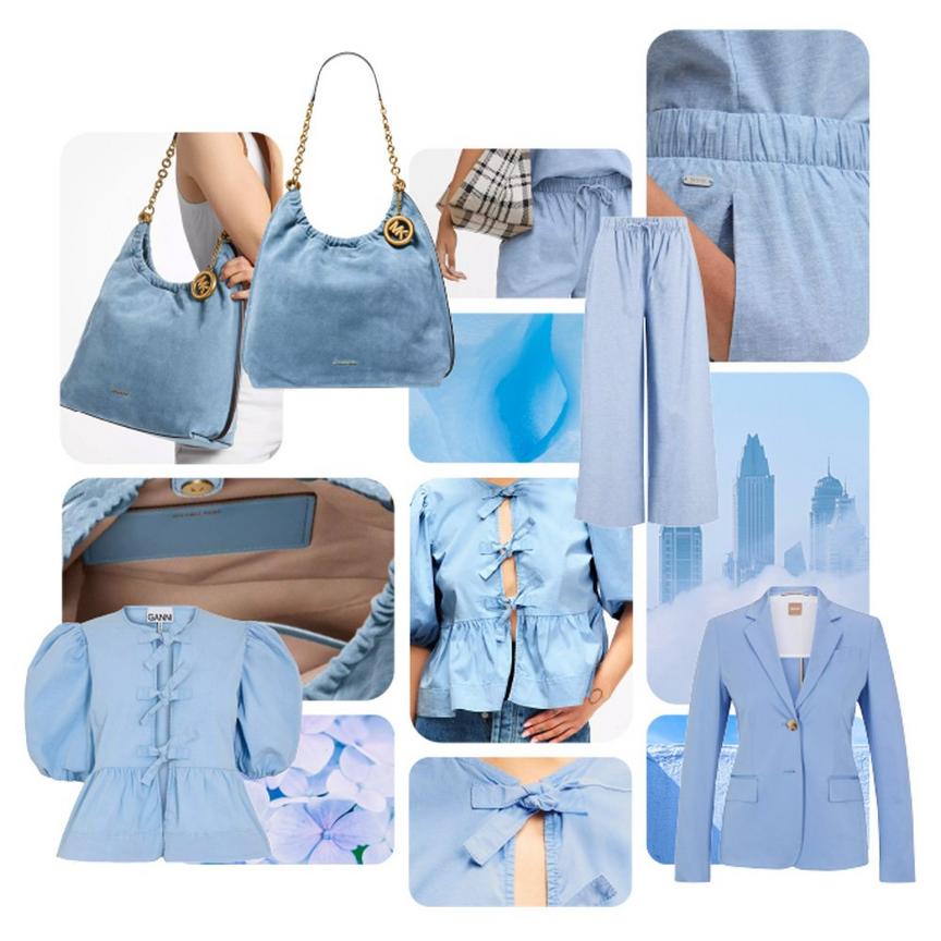 For everyday dressing, incorporate it into smart-casual tailoring. Think a structured blazer, the season’s hero piece, over a blouse or T-shirt and paired with wide-leg trousers. The result is a quietly confident, modern look. If your edit skews denim-heavy, use the shade to sharpen things up. Pairing powder blue with denim offers a refined counterpoint, and proof that your new neutral has earned its place.