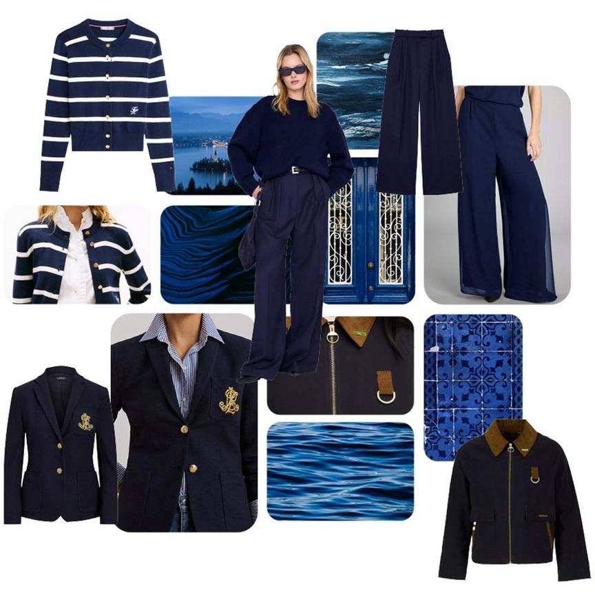 Navy blue isn't strictly a seasonal colour; it features throughout the year. But there's a distinct shift in how it's styled for spring. When paired with pastel colours, it anchors the look, adding real depth and polish, especially when applied to structured pieces. It also feels distinctly preppy in the warmer months, bringing richness that to any look.