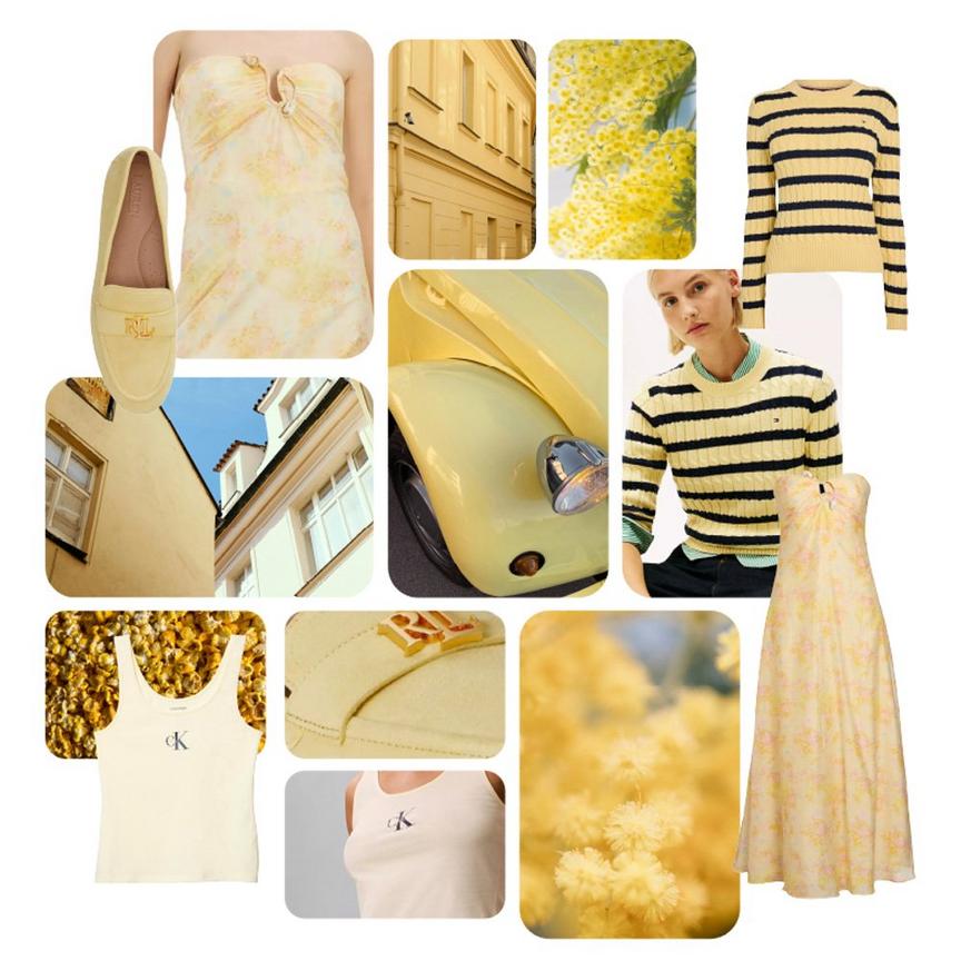 To bring it into your wardrobe, start with the pieces that carry it most naturally. Think dresses and flowing silhouettes best suited for special occasions. For a modern take, a strapless maxi in a soft butter-yellow floral. For something more traditional, a shorter design with sleeves and waist-ruching. Both are ideal for spring weddings. Elsewhere, knitwear is the gateway for incorporating the shade into your everyday wear. Solid pieces work beautifully for layering, while a classic stripe pairs the shade with deeper tones for added contrast.