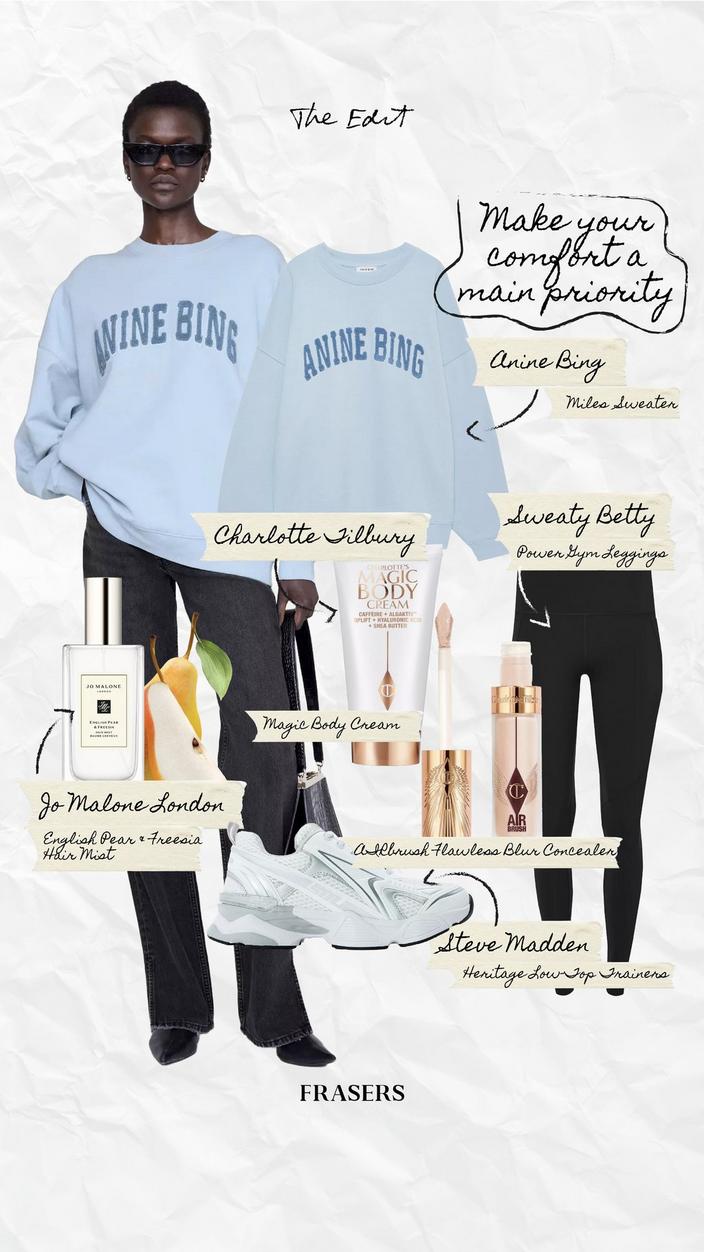 Some days call for slowing down and leaning into comfort: whether it’s a long coffee, a gentle walk or simply switching off at home. Sink into the soft ease of the Anine Bing Miles Sweat for effortless off-duty style, pair it with the sculpting fit of Sweaty Betty Power Gym Leggings, and finish the look with Steve Madden Speedster‑E Trainersf or a laid-back yet polished feel. Self-care isn’t just about doing less, it’s about feeling good in what you wear while you do it.