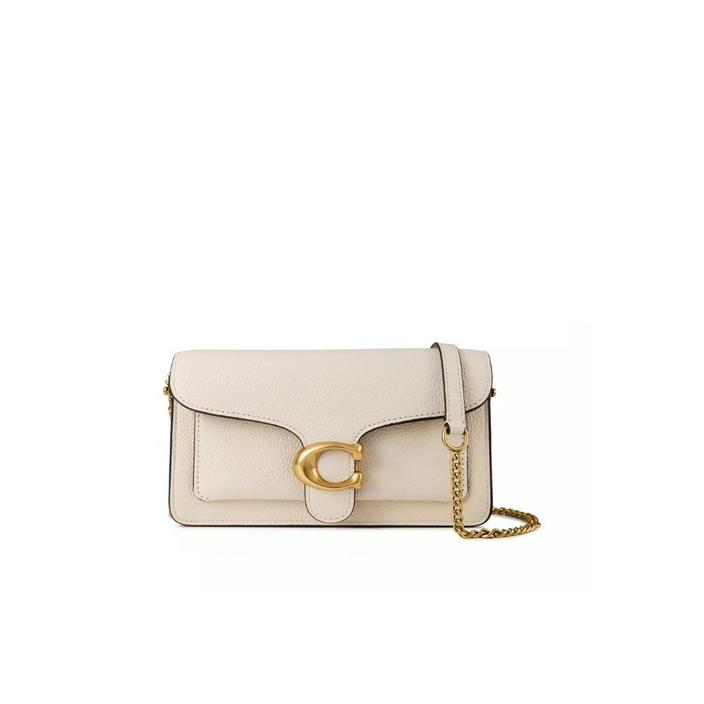 The Coach Tabby Chain Clutch Bag is a perfect example. Its gold-tone C hardware adds a signature touch to the clean, streamlined silhouette, while the chain strap gives you multiple ways to carry it. With a flap closure and a compact interior, this clutch brings together timeless style and practical design -ideal for a gallery opening or a night at the theatre.