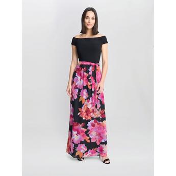 Black Floral Print Short Sleeved V-Neck Midi Smock Dress