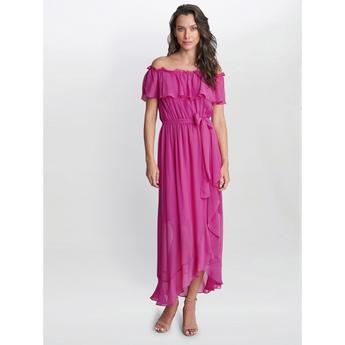 Anaya With Love Recycled Chilli Red Plunge Neck Waterfall Ruffle Maxi Dress
