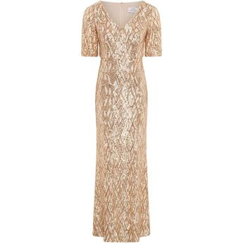 Lily and Lionel Starburst All Over Embellished Maxi Dress In Oyster
